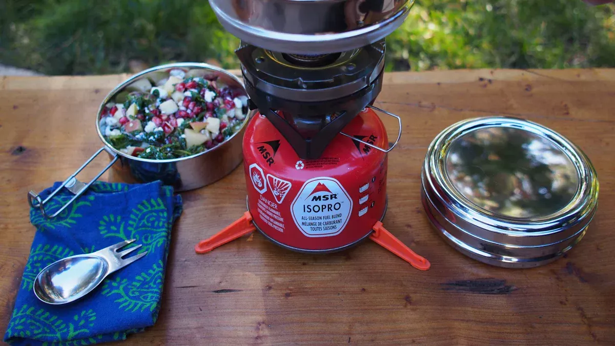 您希望您的 露营烹饪用具 轻便且易于携带。超轻炉灶,例如罐式炉灶或酒精炉,可以节省空间和重量。钛金属杯或简约炊具具有多种用途,因此您可以减少携带的物品。脱水和冻干食品重量轻,占用空间小。这些食物还为您提供多种膳食选择,例如面食或咖喱。您可以在家自己做脱水餐以省钱。