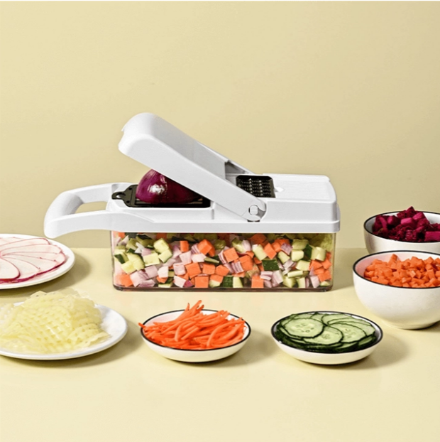您可以使用水果切碎机来切很多蔬菜。它适用于软蔬菜和硬蔬菜。选择正确的模型以获得最佳结果。
