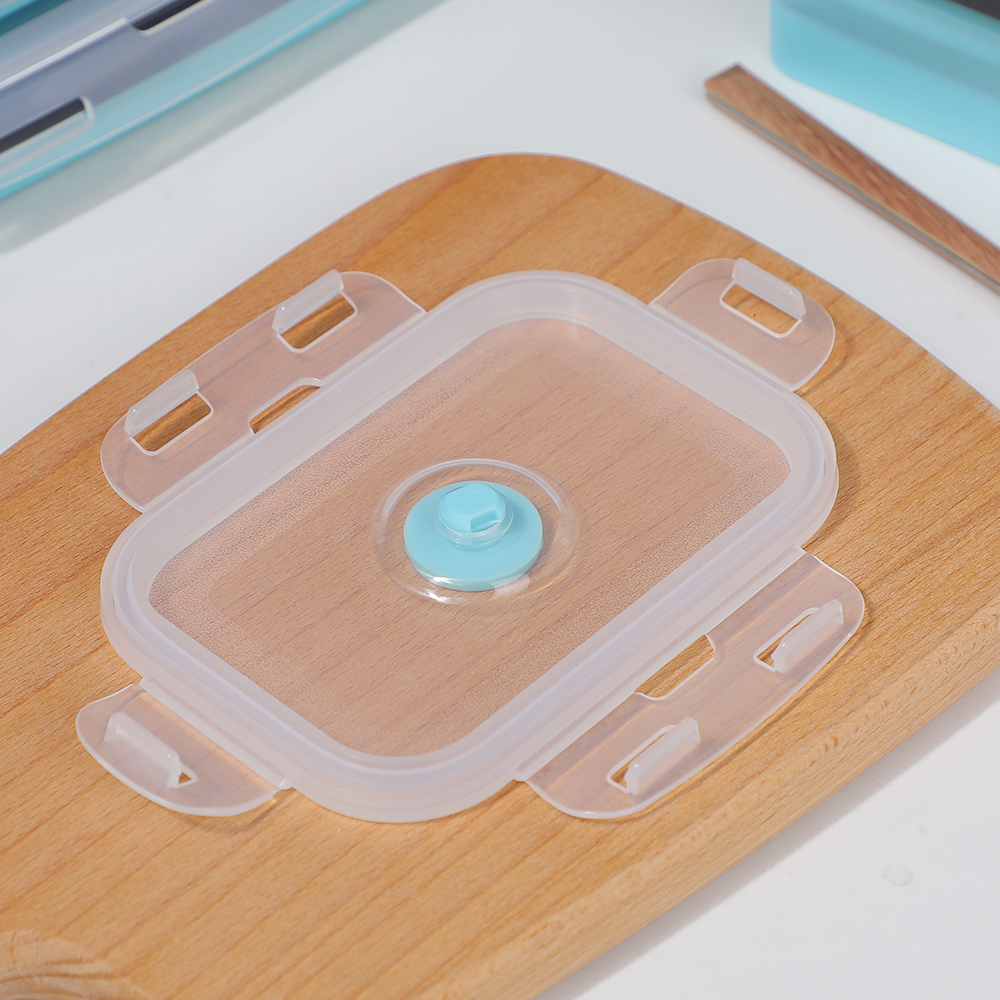 每个容器都配有一个配套的盖子,盖子具有四边锁定系统和硅胶垫圈,可形成气密密封。盖子上有一个用于微波炉的小型排气阀,可防止蒸汽积聚,同时保持密封。透明的盖子设计无需打开即可轻松识别内容物。