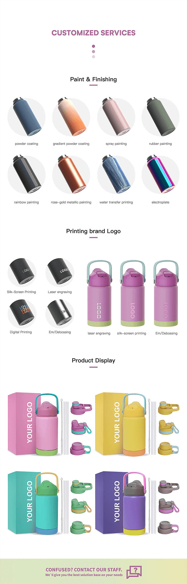 BJ-291 不锈钢保温水瓶,带吸管盖、喷嘴盖和伞绳手柄 不锈钢水瓶