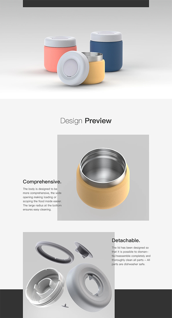 BJ-565 不锈钢便当盒 硅胶盖保温饭盒