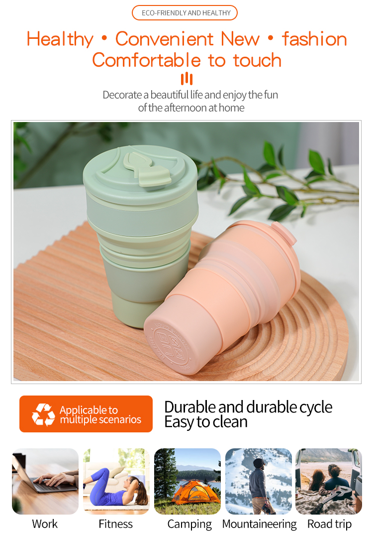 用于热饮和冷饮的可折叠硅胶旅行杯 是 注重便利性和耐用性的环保人士的终极解决方案。它重量轻、可重复使用且对所有类型的饮料都安全,非常适合日常通勤、户外探险和可持续生活。灵活的定制和优质的材质,不仅是实用的日常用品,也是品牌绝佳的宣传品。
