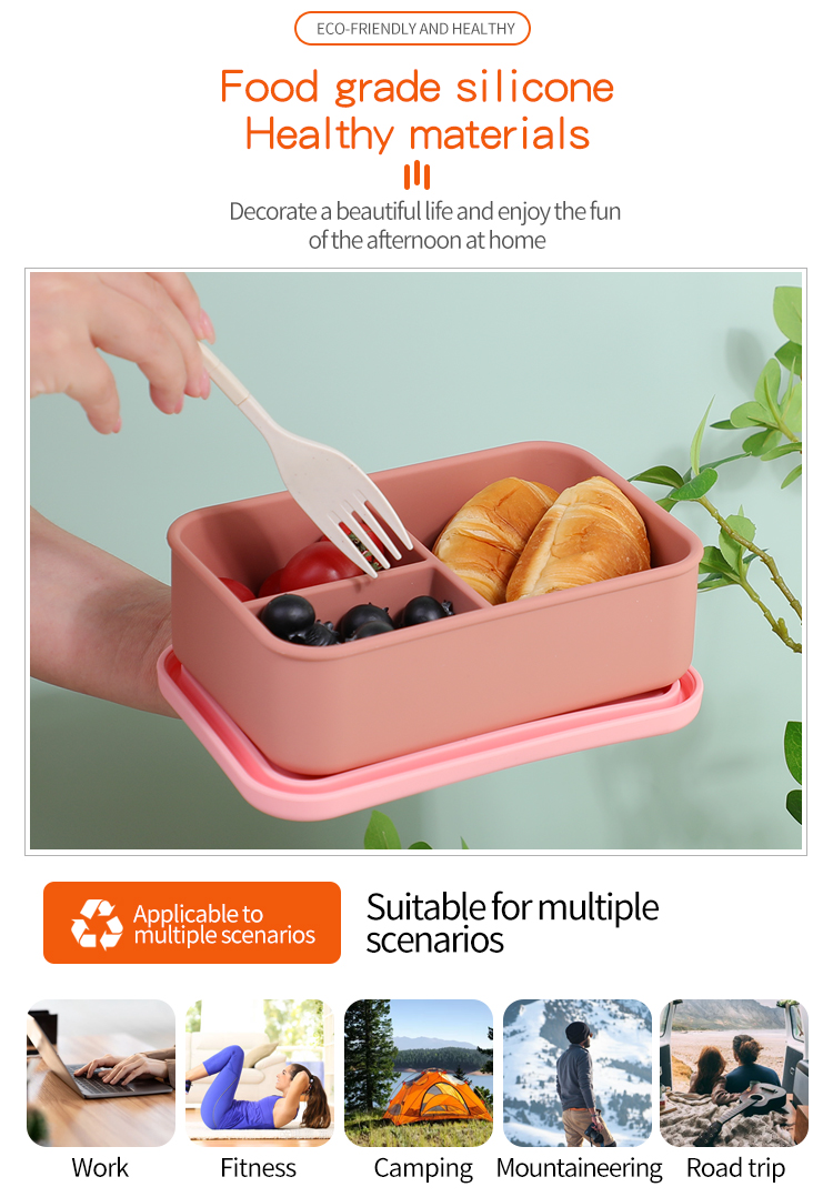 | 产品名称 | 3 隔室可重复使用硅胶 便当盒 |