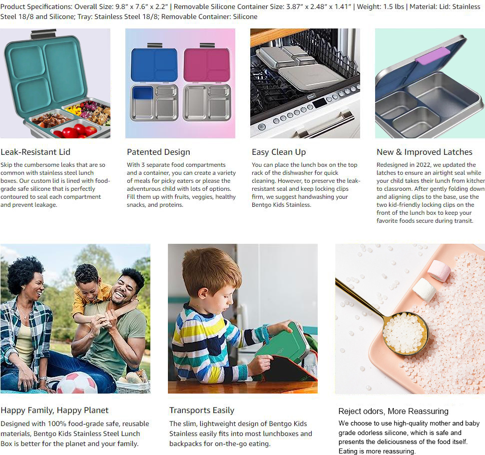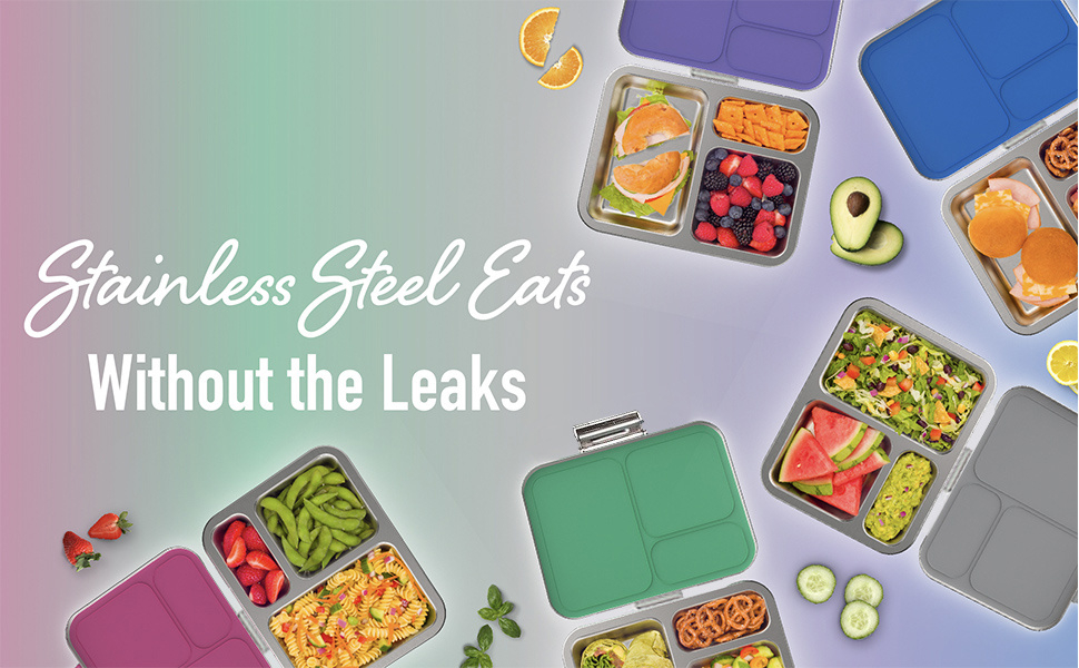 环保、可用洗碗机清洗、专利设计,带 3 个隔层和额外容器可用不锈钢防漏午餐盒