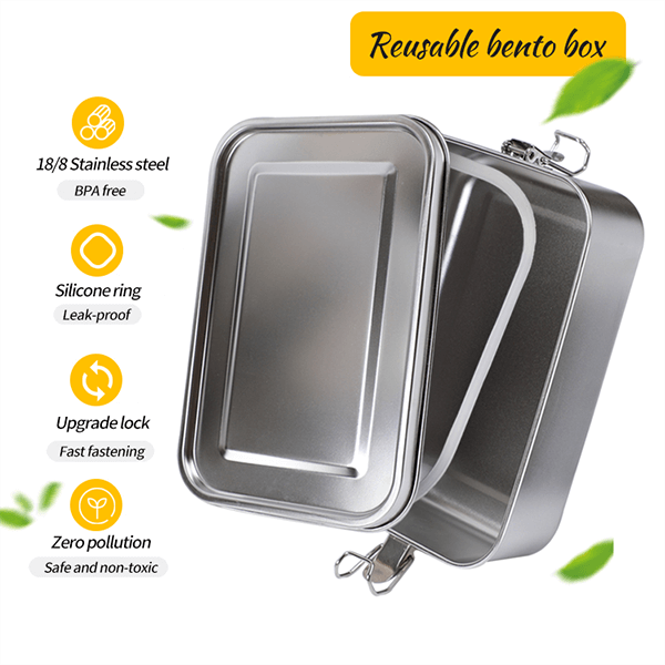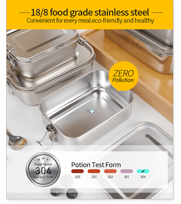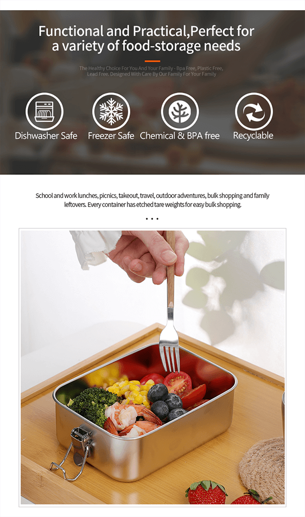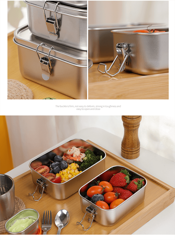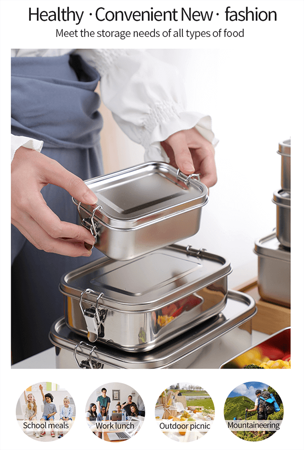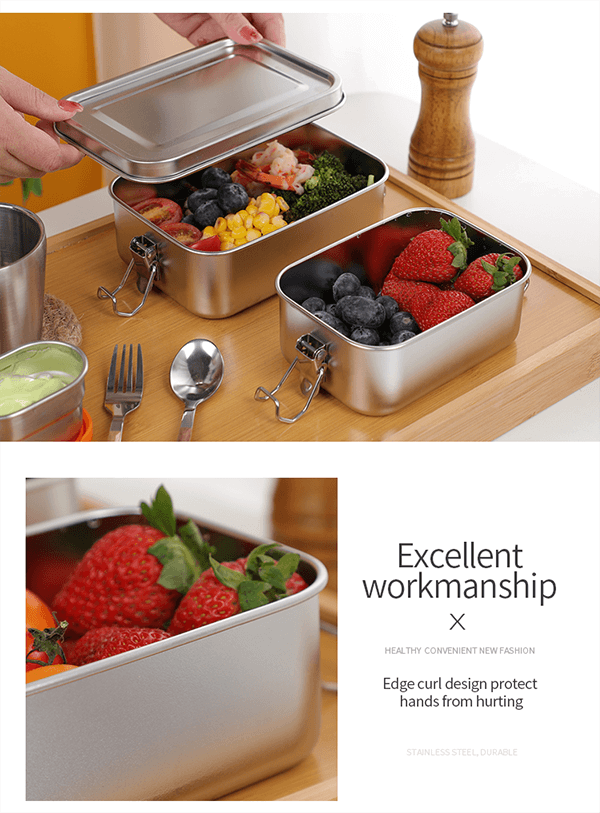 高品质不锈钢:由高级不锈钢制成,保证持久耐用、耐腐蚀和卫生,安全储存和携带食品。