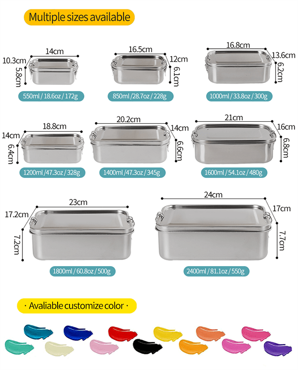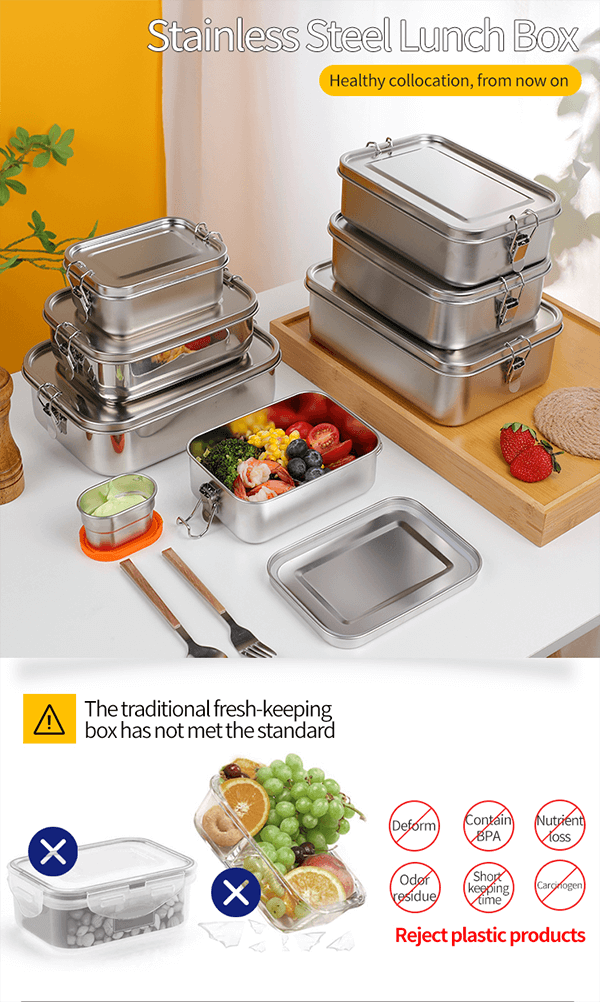 耐用的不锈钢 便当盒 是一种高品质且环保的膳食存储解决方案。由 304 不锈钢制成,确保耐用性和安全性。