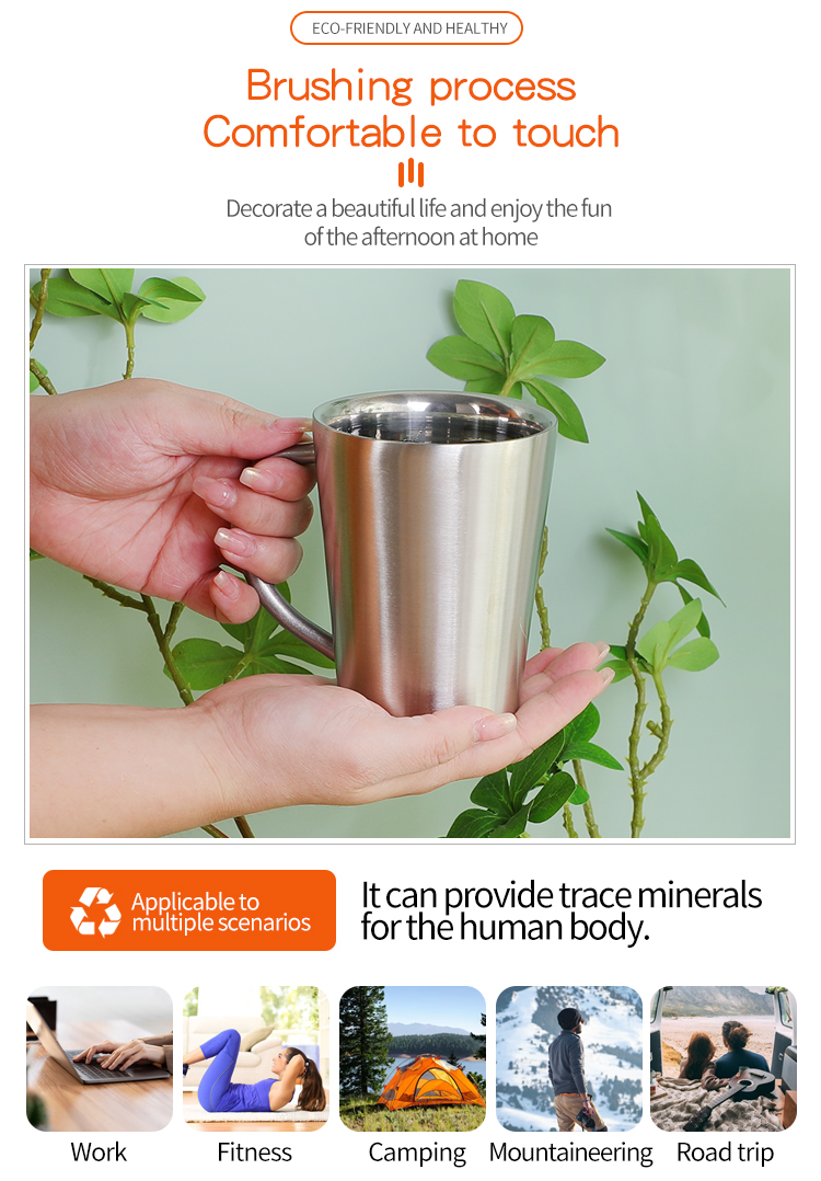 我们的杯子非常适合各种咖啡冲泡,包括滴滤咖啡、浓缩咖啡、美式咖啡和冷萃咖啡。双层隔热层可保持最佳饮用温度,而不锈钢内部不会吸收咖啡油或影响风味。为了获得最佳效果,请在添加咖啡之前用热水预热杯子,以延长保温时间。