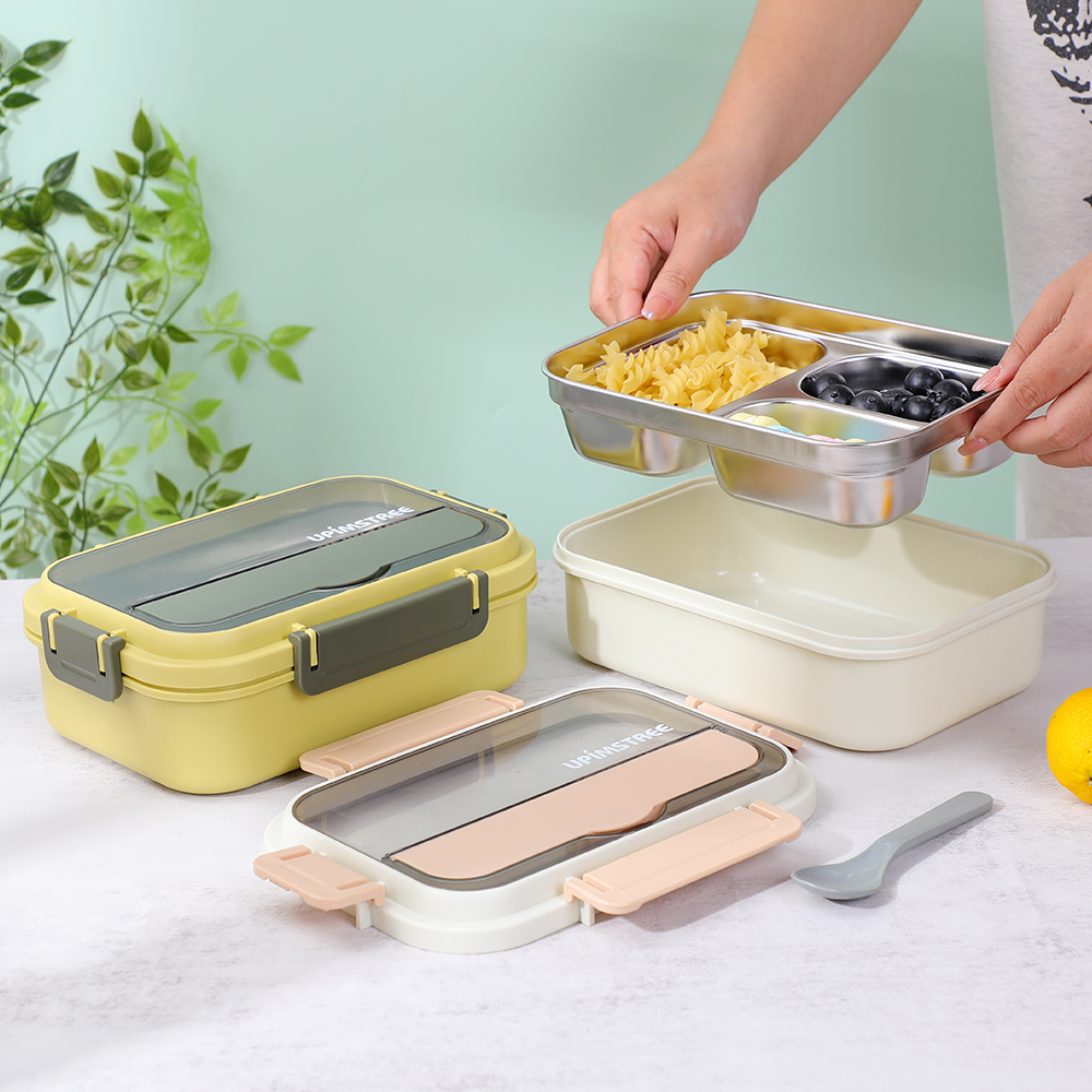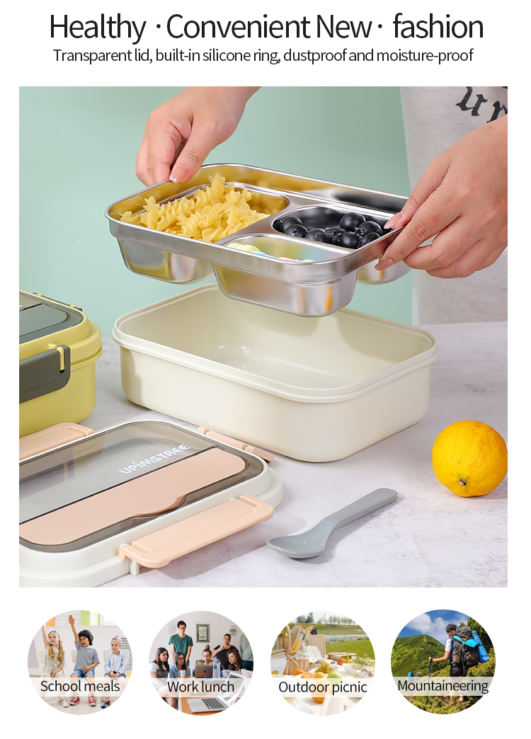 实用设计: 三个隔间和集成餐具简化了日常用餐和份量控制。