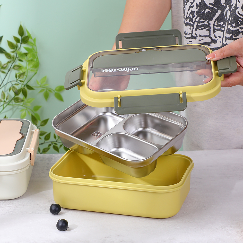 带餐具的三格不锈钢午餐盒专为满足现代生活方式的需求而设计,兼具耐用性、实用性和环保性。采用优质 304 不锈钢制成,防锈、防腐蚀,确保食品储存安全。它的三个隔间将主菜、配菜和小吃分开,保持新鲜并防止味道混合。