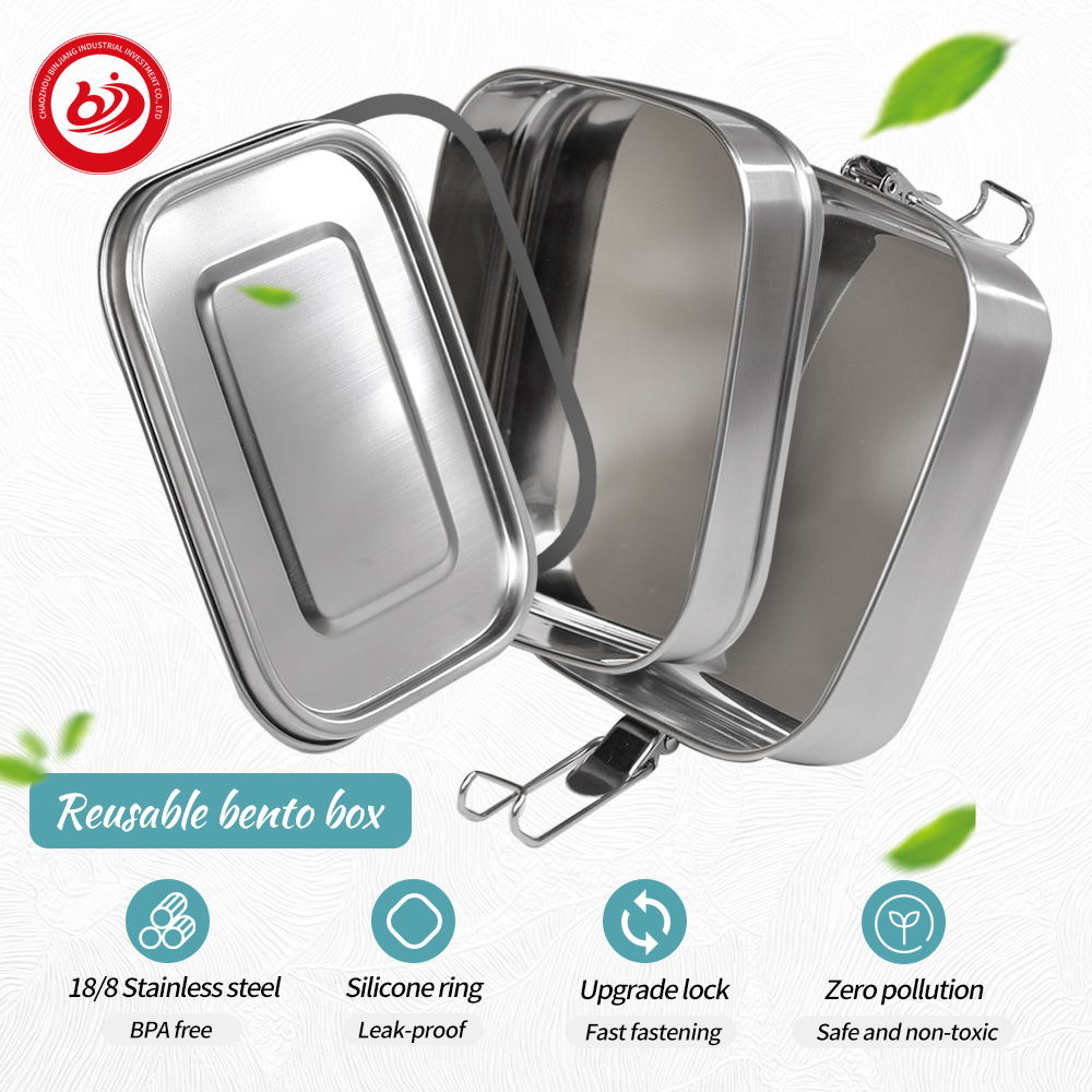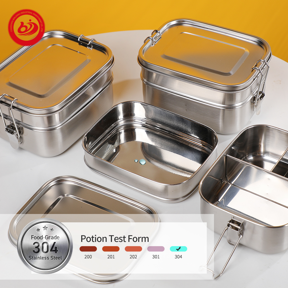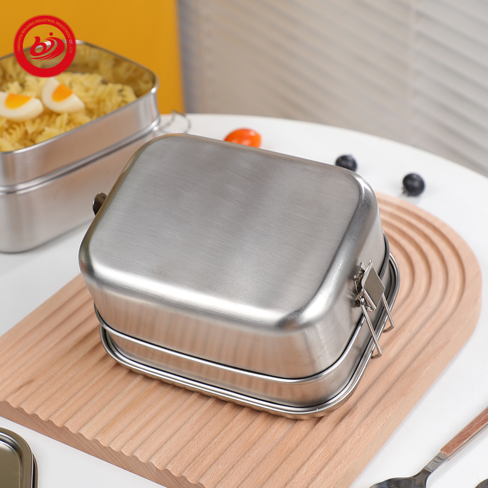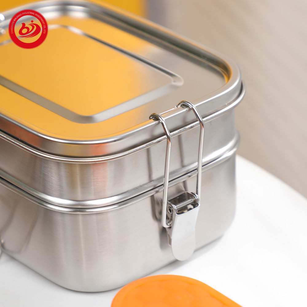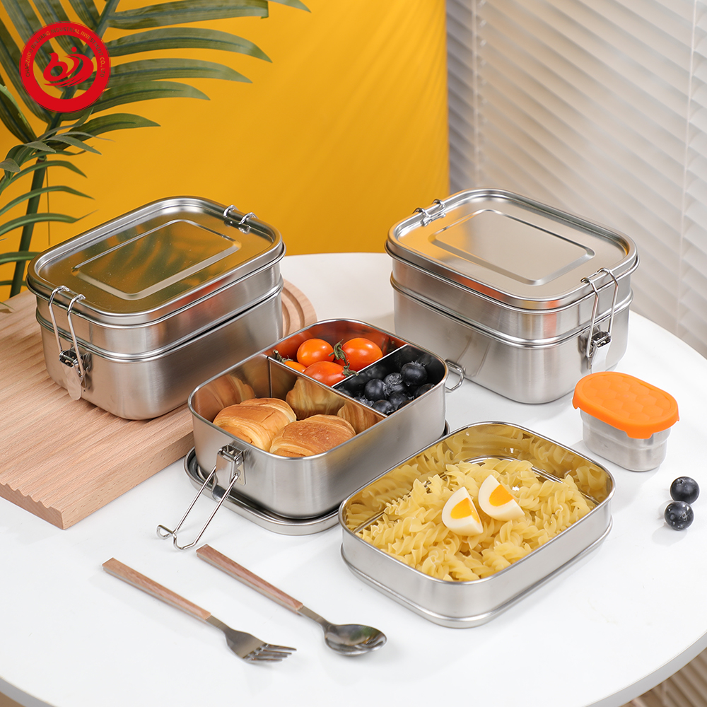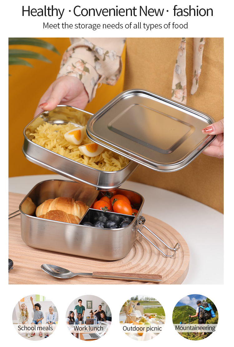带夹锁的2 层不锈钢防漏 便当盒 是耐用性、实用性和环保性的完美结合。专为现代生活方式而设计,适合成人、儿童和户外探险家。这款午餐盒采用强大的防漏技术、食品安全不锈钢和可定制的品牌,为寻求高品质、可重复使用的膳食存储的企业和消费者提供了理想的解决方案。