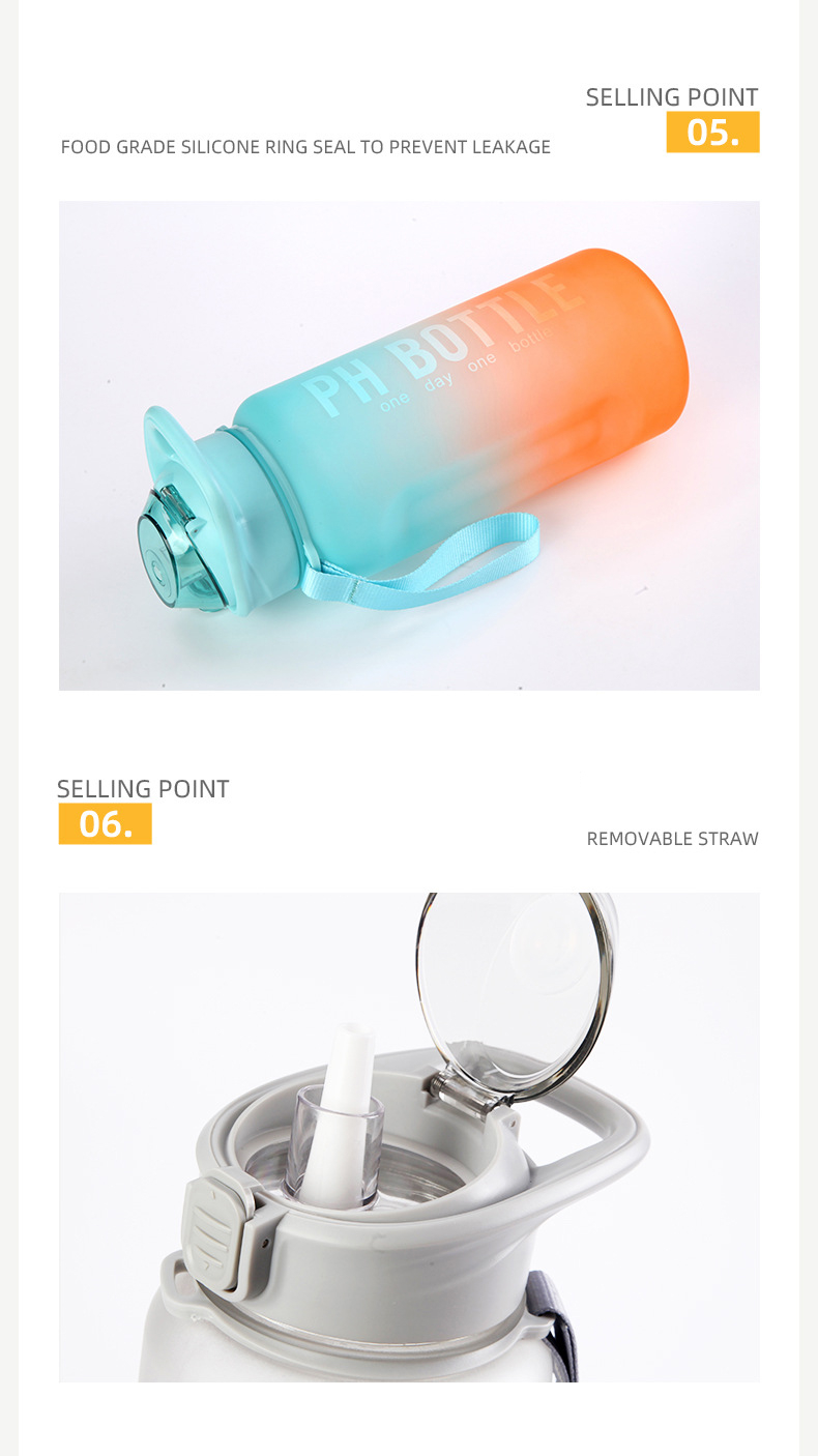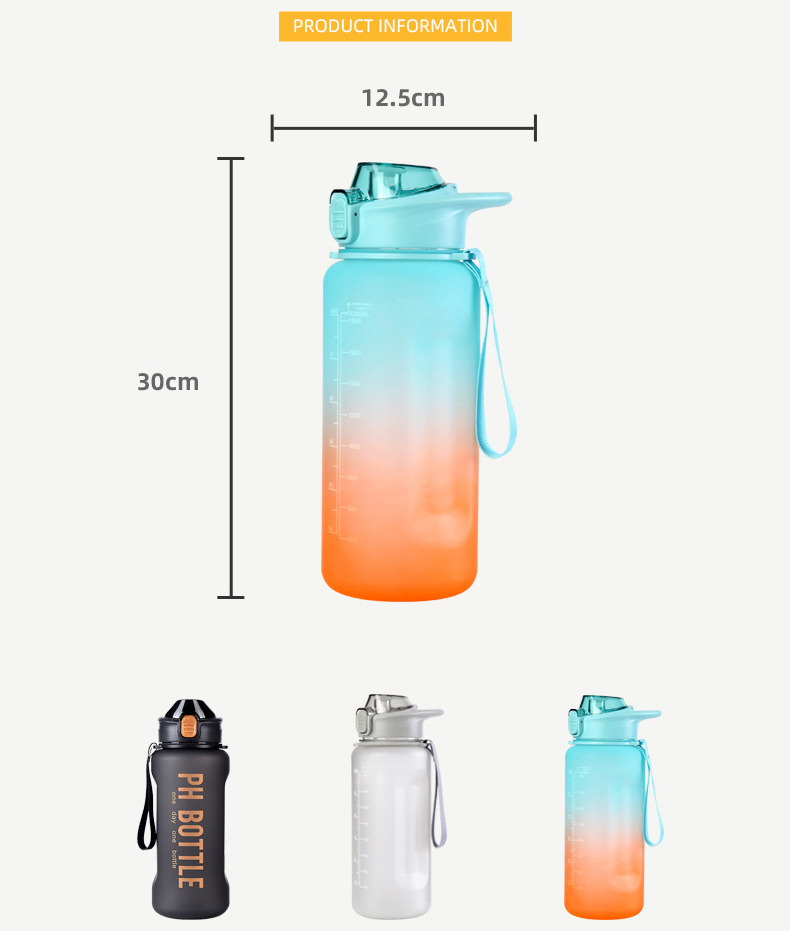 答:该瓶子非常适合健身房锻炼、户外运动、办公室使用以及任何需要全天持续补水的活动。其大容量和耐用的设计使其非常适合积极的生活方式。