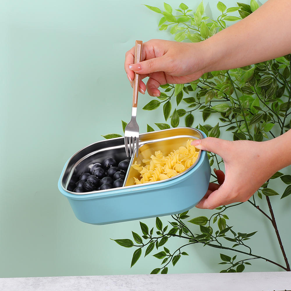 带通风孔的 2 隔层不锈钢份量控制午餐盒专为实用且安全的膳食存储而设计。它由 304 不锈钢制成,耐用且易于清洁。这两个隔间允许用户分开不同类型的食物,方便均衡膳食准备或份量控制。