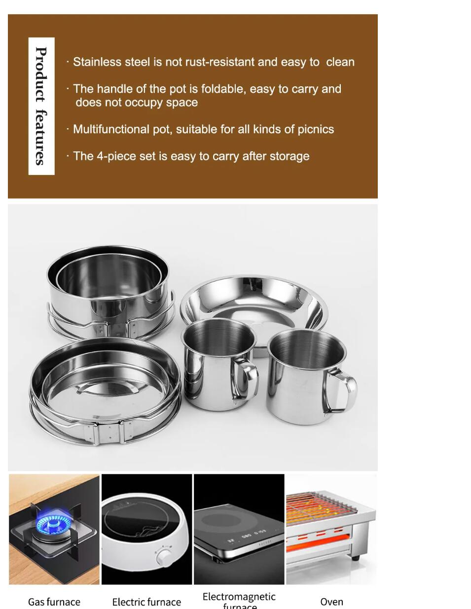 不要在旅途中的膳食上做出妥协。该炊具套装提供耐用性、便携性和多功能性,让您在冒险的任何地方都能烹饪美味、令人满意的食物。立即订购不锈钢野营炊具套装,品尝品质带来的差异!