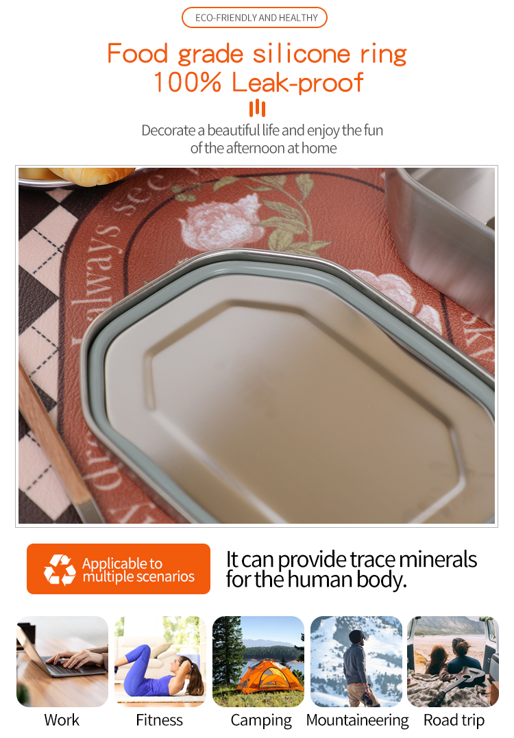其核心理念建立在三个支柱之上:安全、性能和设计。 304 不锈钢的使用解决了人们对塑料废物和化学污染日益增长的担忧,为未来几年提供了安全且可重复使用的替代品。先进的隔热技术可确保您为烹饪一顿美餐而付出的努力在中午到来时不会被浪费,从而在您的办公桌或旅途中提供餐厅品质的体验。最后,智能设计具有多个隔层和防漏密封,可促进均衡且有组织的膳食,让您可以包装各种食物而不会混合在一起。