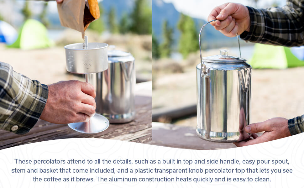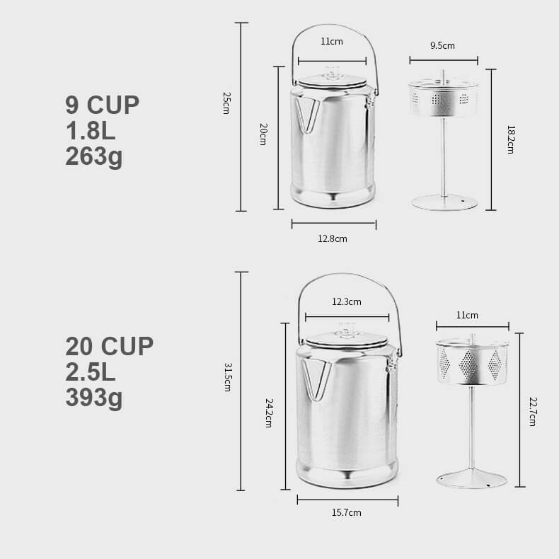 该水壶采用经典的渗滤器冲泡方法设计,可从咖啡渣中提取浓郁的风味,同时保持均匀的冲泡温度。该系统确保每杯咖啡都能提供芳香浓郁的咖啡,非常适合清晨露营地或周末度假。