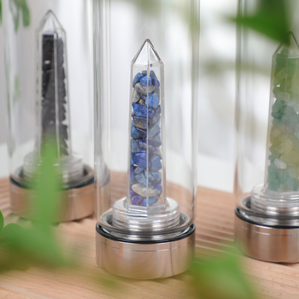 正宗的天然水晶:我们只采购正宗的、符合道德开采的宝石。每颗水晶的颜色、形状和天然内含物都是独一无二的,使您的瓶子成为独一无二的作品。