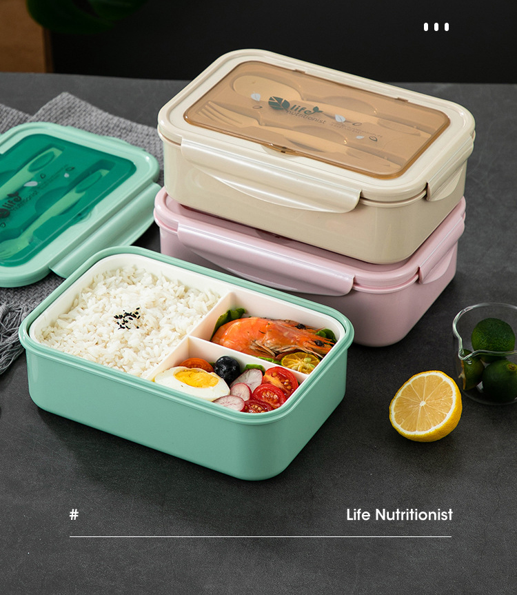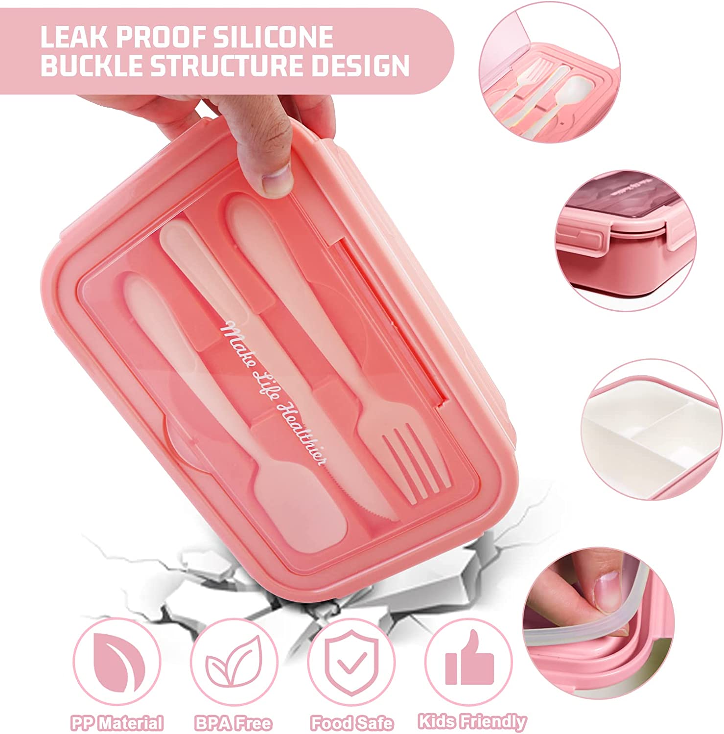 带餐具的防漏 3 隔层 便当盒 在一个时尚的容器中提供便利、安全和组织。其防漏盖、三个隔层和随附的餐具使其非常适合工作、学校、野餐和旅行。它可用于微波炉、洗碗机,且不含 BPA,是日常膳食准备的实用可靠的选择。