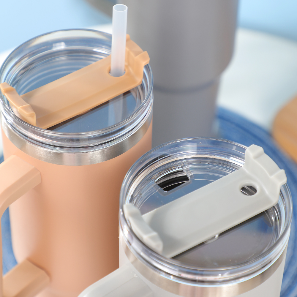 吸管盖:配有宽大、耐用的吸管,非常适合饮用冷饮。吸管可拆卸,易于清洁,由不含 BPA 的材料制成。盖子上有一个滑动盖,可防止不使用时溢出。