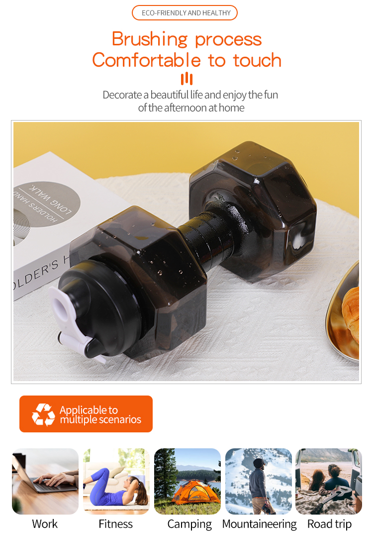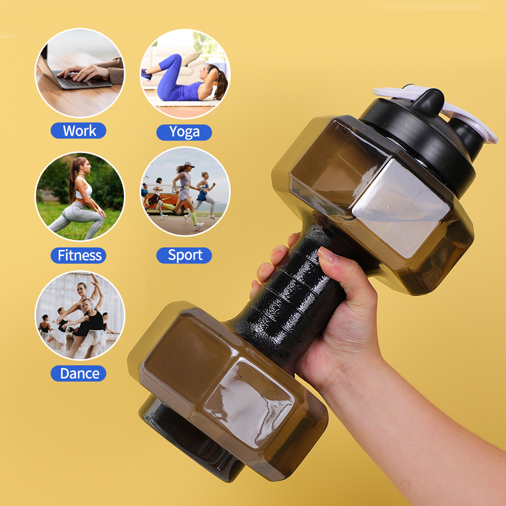1) CE&FDA&LFGB 认证户外运动 75 盎司哑铃水瓶健身房大容量 PETG 运动健身运动水壶,最小起订量为 100 件。水瓶经过认证,确保其中保存的食物不会释放有害物质和异味。