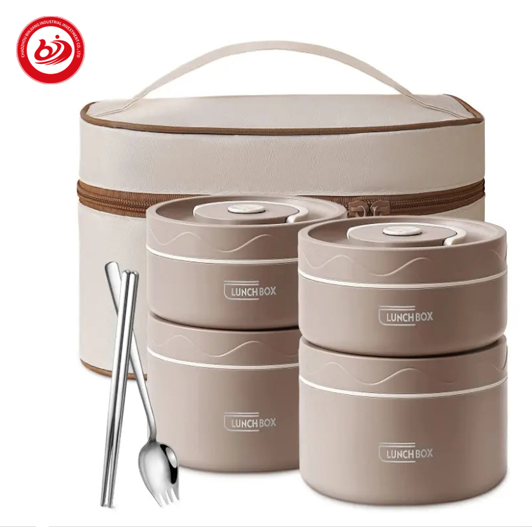 这款不锈钢便当饭盒 套装配有一个袋子,可以同时携带其余的小饭盒,将菜肴分开并保存食物。