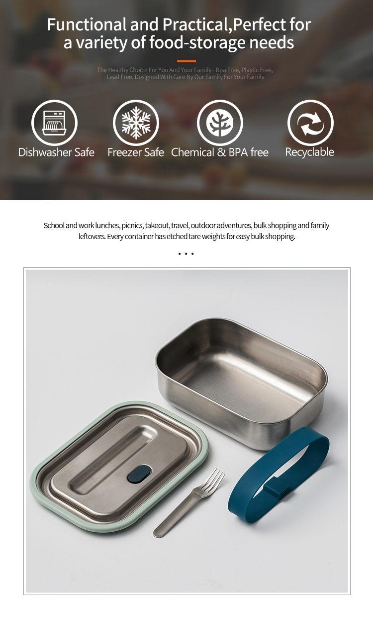 每个容器都配有安全锁盖,配有硅胶密封圈,可确保 100% 防漏性能。四边锁定机构形成气密密封,可保持食物新鲜并防止运输过程中溢出。