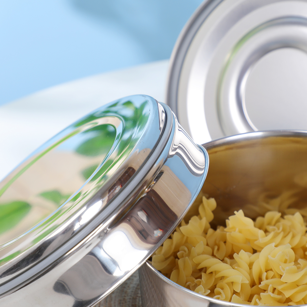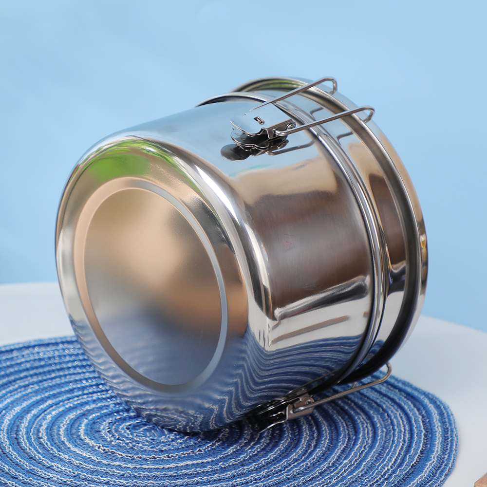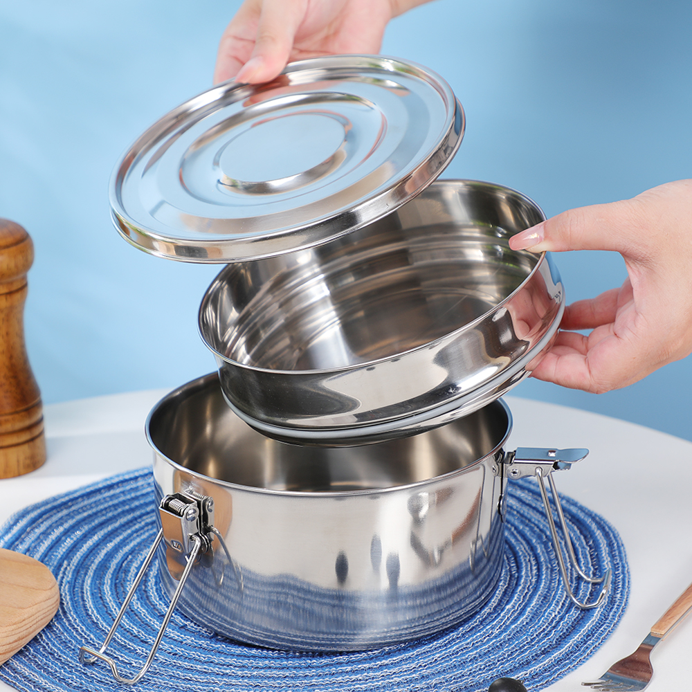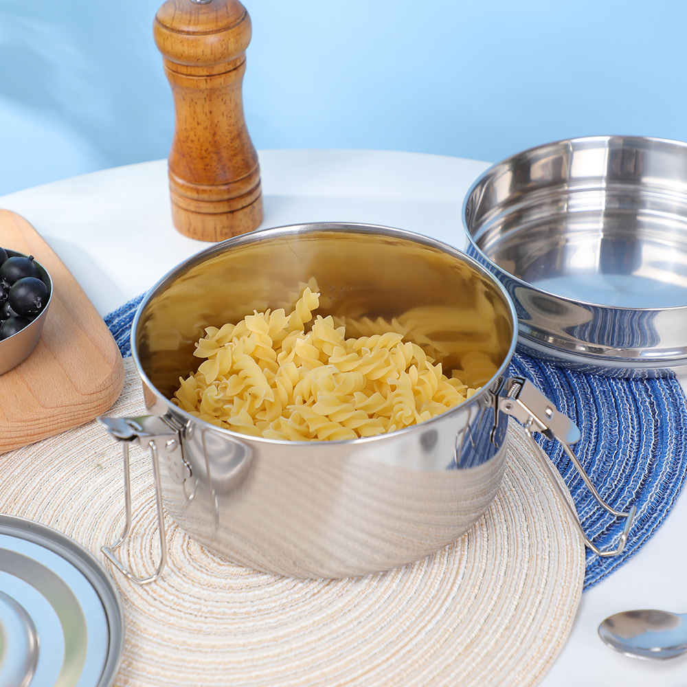 1) CE&FDA&LFGB 认证不锈钢便当盒保温午餐盒,最小起订量为 100 件。圆形 2 层大型可堆叠 便当盒 经过认证,可确保其中保存的食物不会释放有害物质和异味。