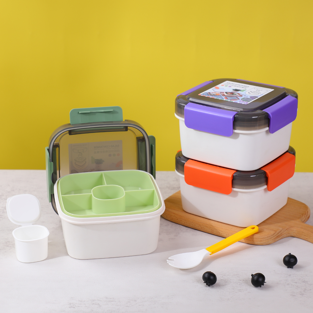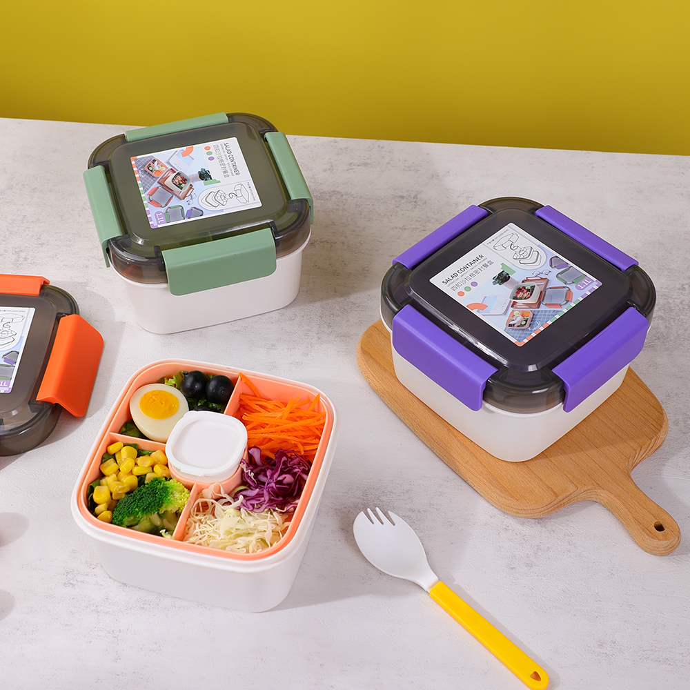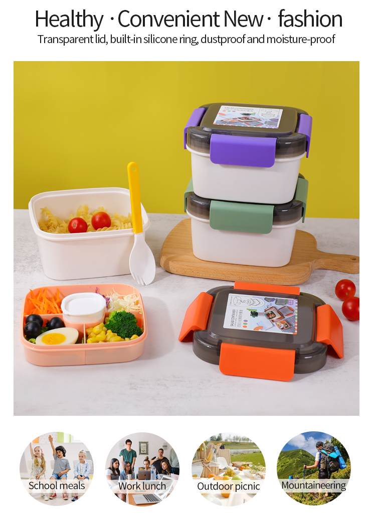 该容器容量为 1100 毫升(37 盎司),由不含 BPA、无铅的材料制成,可确保食品安全和新鲜。它可用于微波炉、冰箱且可回收,非常适合日常使用。无论您需要一个用于工作的便携式午餐容器还是一个用于野餐和户外探险的可靠沙拉容器,该产品都是多功能且实用的。时尚的彩色午餐盒
