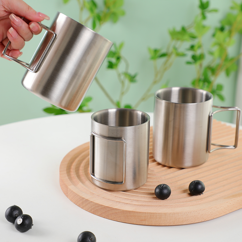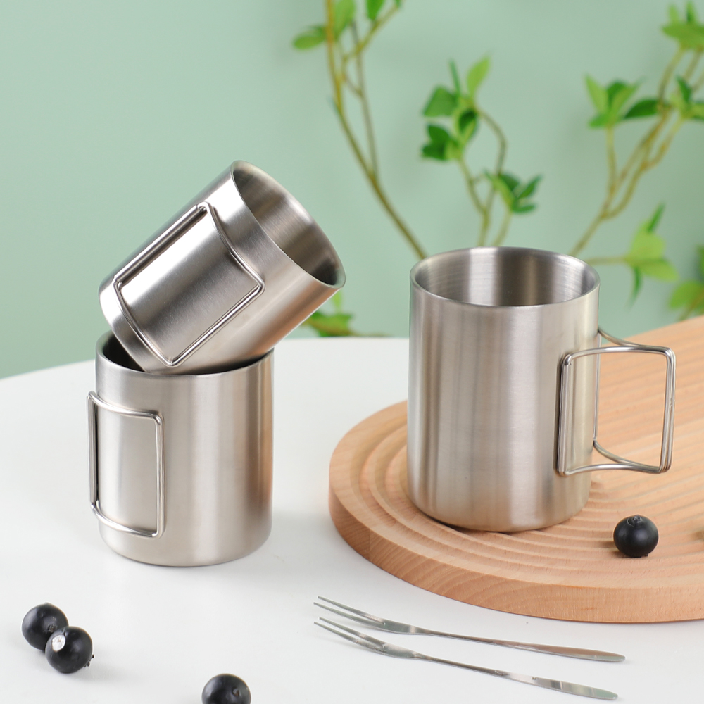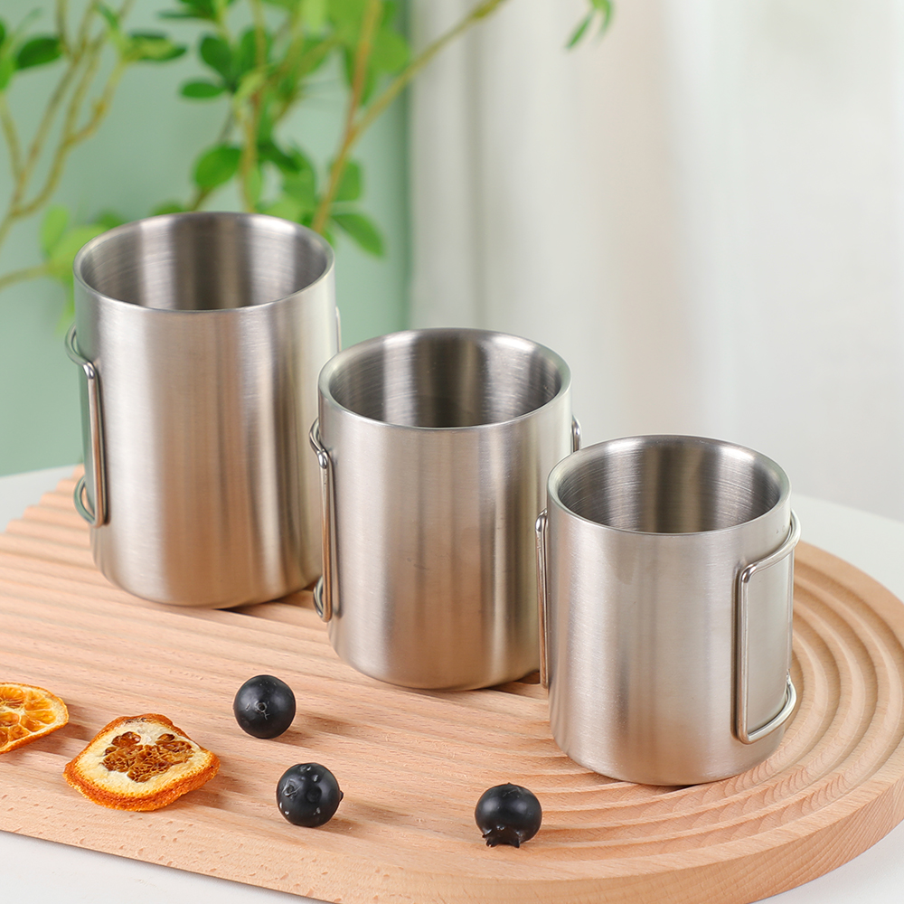 带折叠手柄的可 堆叠不锈钢野营杯 不仅仅是饮具 - 对于重视实用性、耐用性和环保设计的人来说,它们是必备装备。这些杯子具有紧凑的存储空间、坚固的结构和多功能的应用,是户外爱好者和日常简约主义者的完美选择。