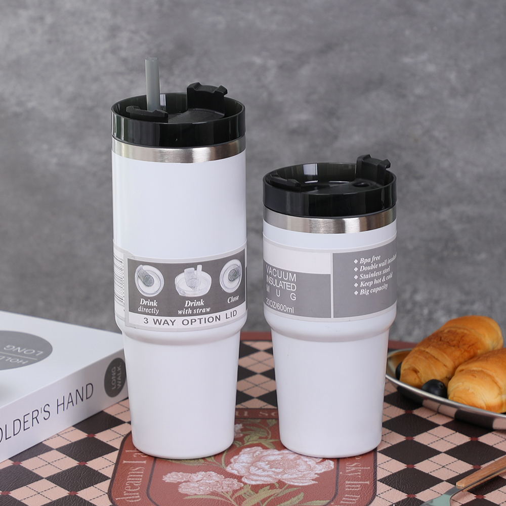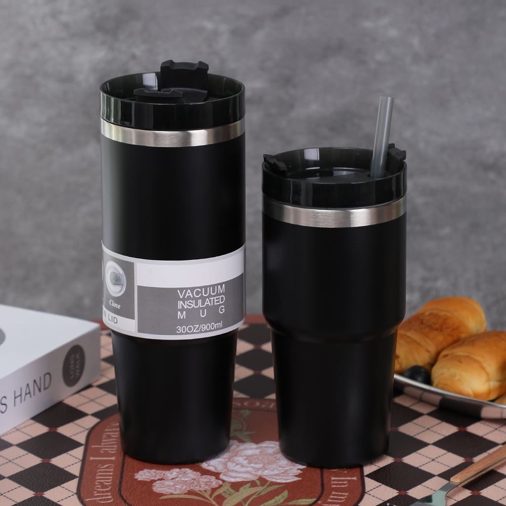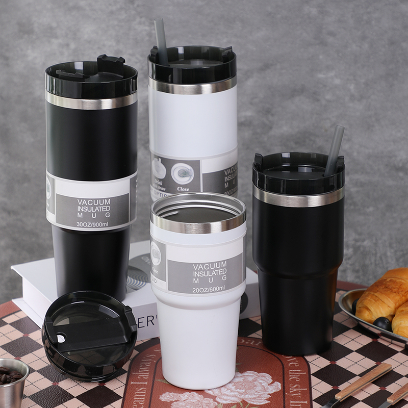 防漏 304 不锈钢双层旅行杯大号透明水瓶保温杯带吸管盖的保温杯和凉爽杯