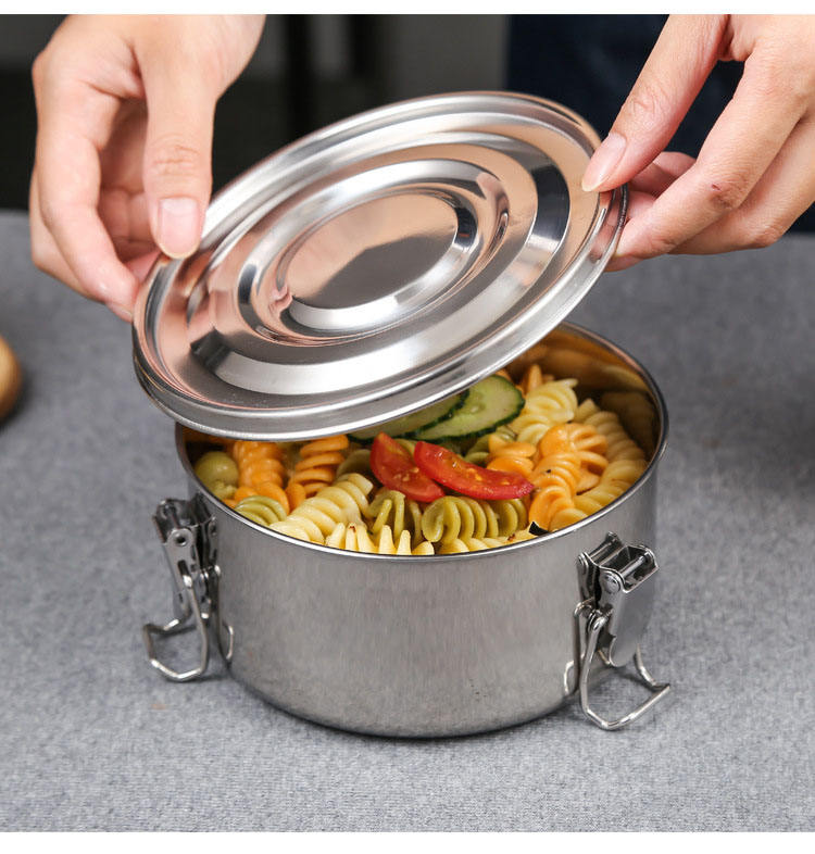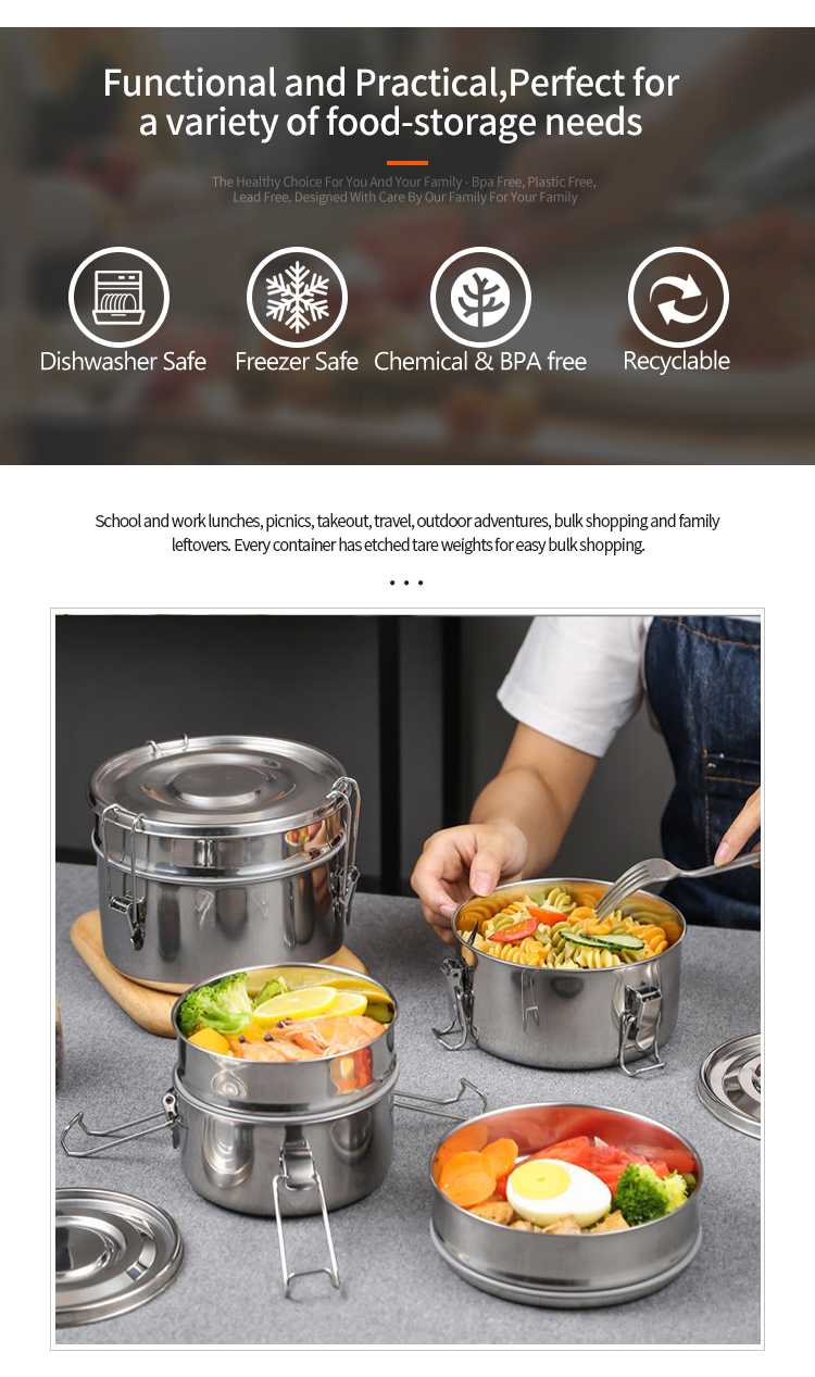 这款午餐盒完全由 304 食品级不锈钢制成,消除了对化学浸出或塑料降解的担忧。与可能吸收气味或污渍的塑料容器不同,我们的不锈钢结构在无数次使用后仍保持原始状态。不含 BPA 的密封组件确保您的食物不会接触到有害物质,为您和您的家人提供安全的饮食体验。