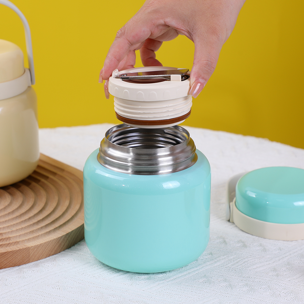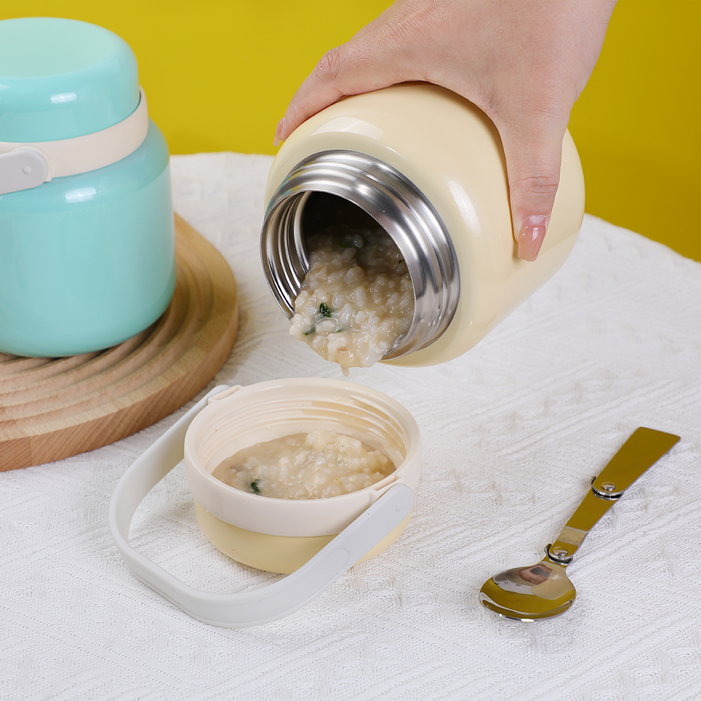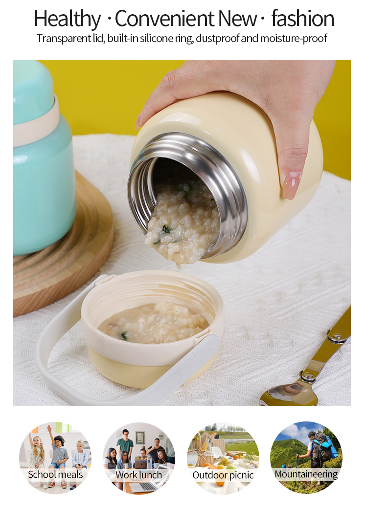 2)微波炉安全(不带盖子,248°F下2-4分钟);冷冻柜安全(≧-4°F);可用洗碗机清洗(仅限顶架,建议手洗盖子,以避免高温高压清洗造成变形)。不含 BPA 防漏不锈钢可爱儿童保温真空瓶带手柄非常适合学校、办公室、工厂、家庭和户外。将您的意大利面、鸡肉、沙拉、三明治、水果、零食或寿司放入其中,然后随时随地享用。