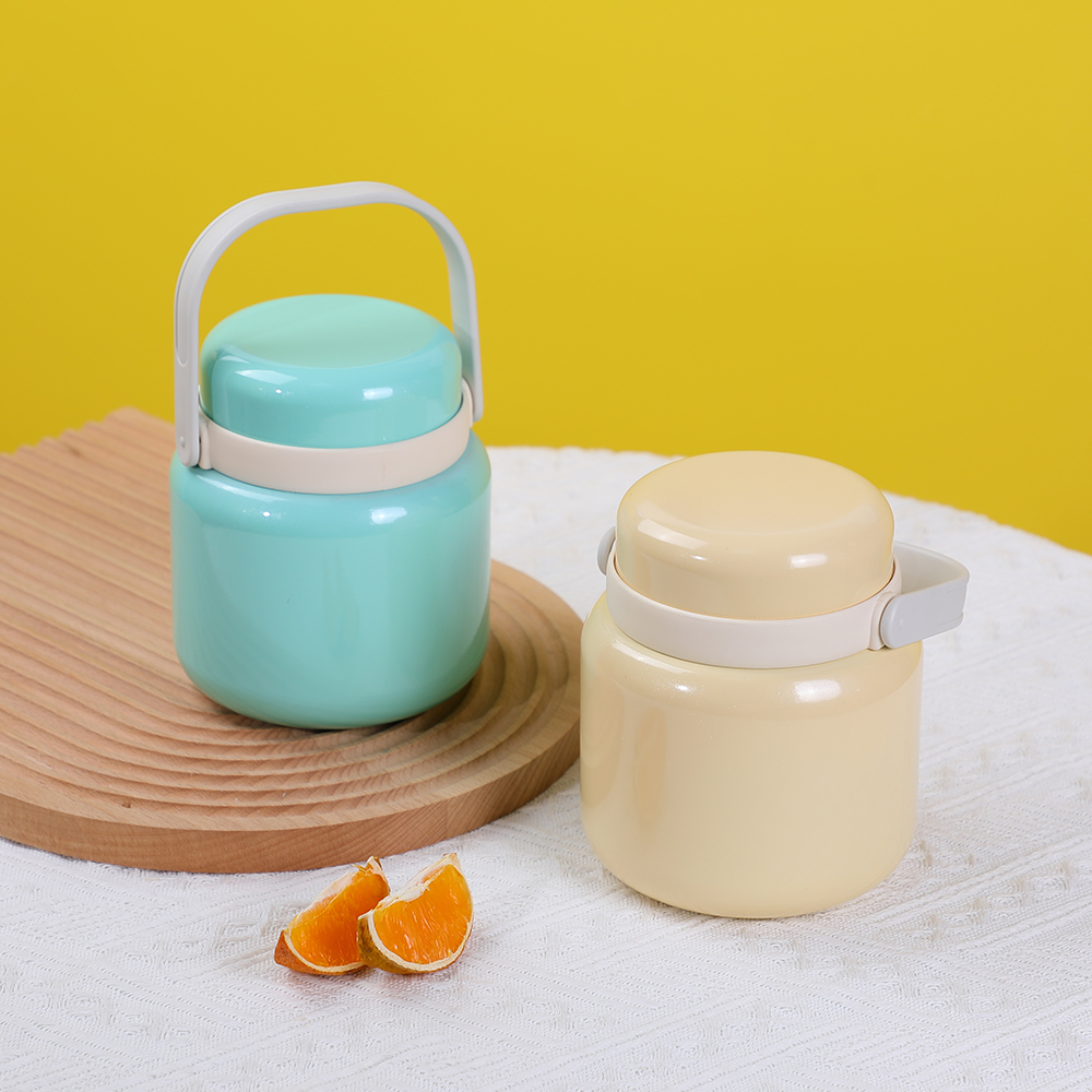 1) CE&FDA&LFGB 认证不锈钢水瓶,最小起订量为 100 件。可爱的儿童带手柄保温真空瓶经过认证,确保其中保存的食物不会释放有害物质和异味。