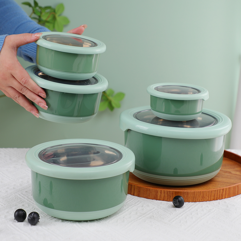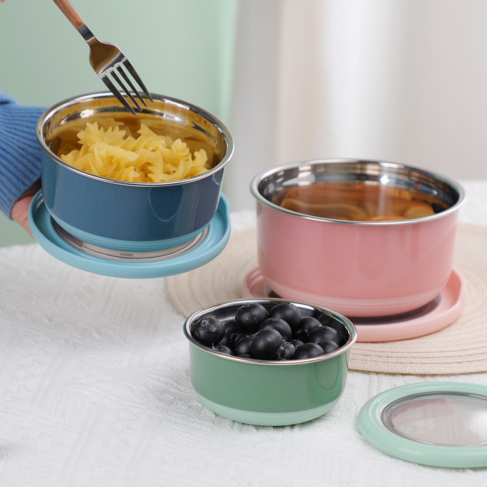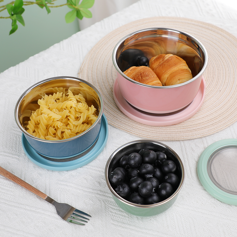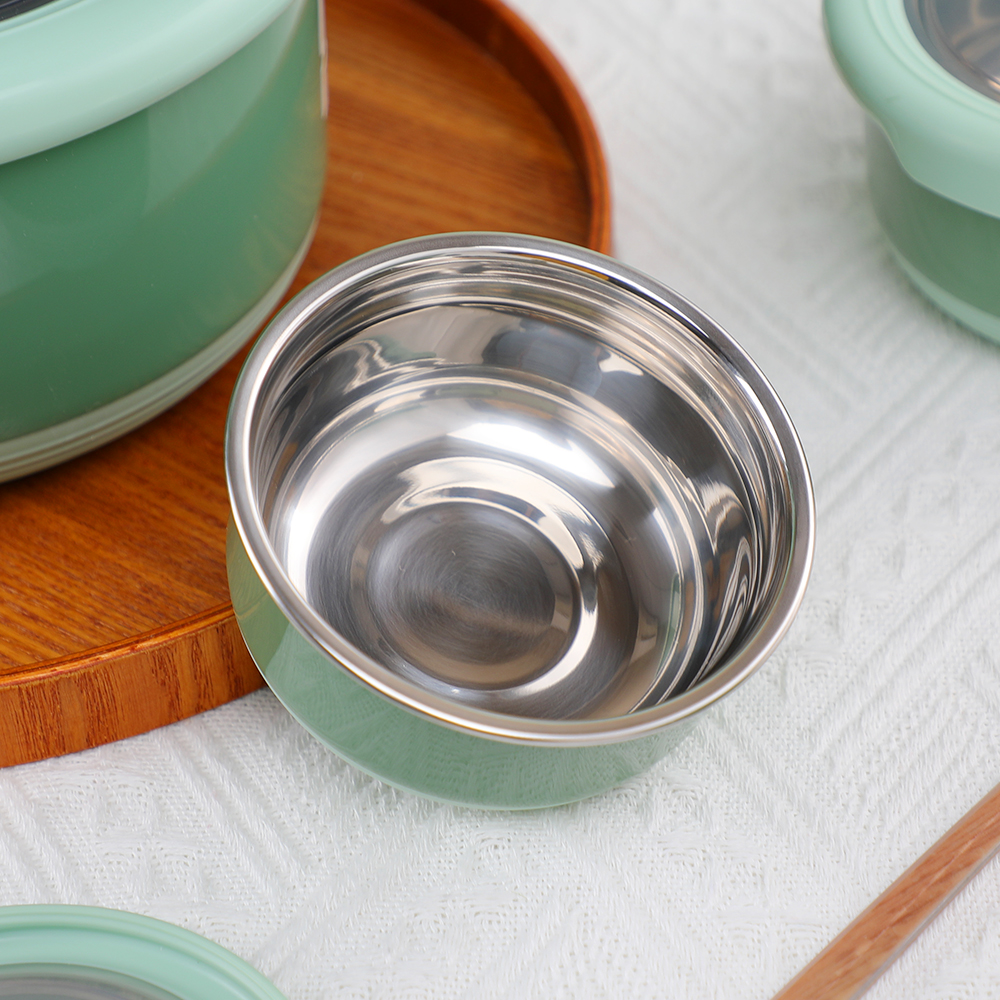 这款为寻求可靠、环保食品储存的现代家庭而设计, 5 件套圆形保鲜盒密封不锈钢碗套装专 集便利性和功能性于一身。这些 304采用可堆叠设计和防漏硅胶盖, 不锈钢 便当盒 非常适合学校、办公室或旅行使用。无论您是储存意大利面、零食还是提前准备饭菜,这些不锈钢餐具食品容器都能让您的食物轻松保持新鲜和井井有条。