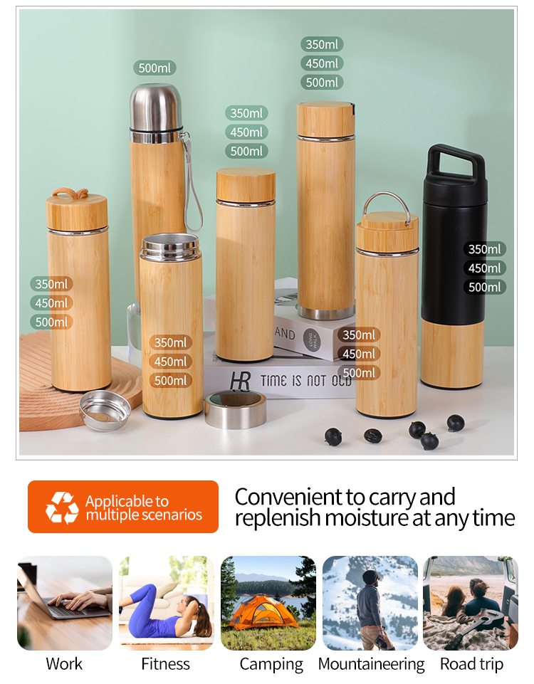 瓶身外部采用竹画设计,不仅是实用的补水工具,也是时尚的配饰。其时尚现代的外观使其成为专业人士、学生和户外爱好者的理想选择。