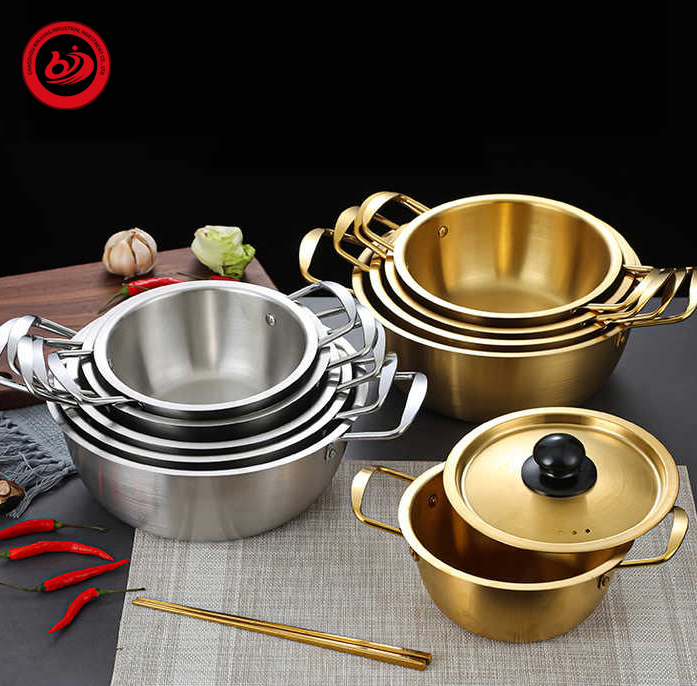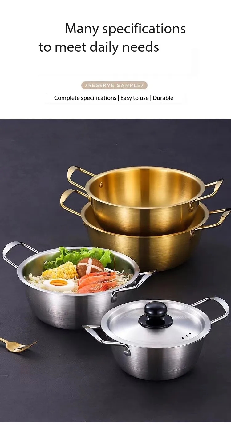 1) CE&FDA&LFGB 认证不锈钢韩国拉面锅,起订量为 100 件。泡菜锅经过认证,确保其中保存的食物不释放有害物质和异味。