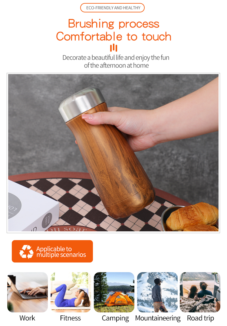 使用宽口 304 不锈钢双壁木质涂层旅行杯提升您的日常饮料体验,完美融合自然优雅和现代功能。这款玻璃杯由高品质 304 不锈钢制成,具有可持续的木纹外部涂层,具有双层隔热功能,可让您的饮料保温长达 6 小时或保冷长达 12 小时。宽口设计方便啜饮、添加冰块或清洁,而带有滑动盖的安全防溢盖可确保安全运输。木质涂层饰面轻巧时尚,提供舒适防滑的握持感和独特的环保美感,使其成为咖啡爱好者、茶爱好者以及任何重视日常饮具外观和功能的人士的理想选择。