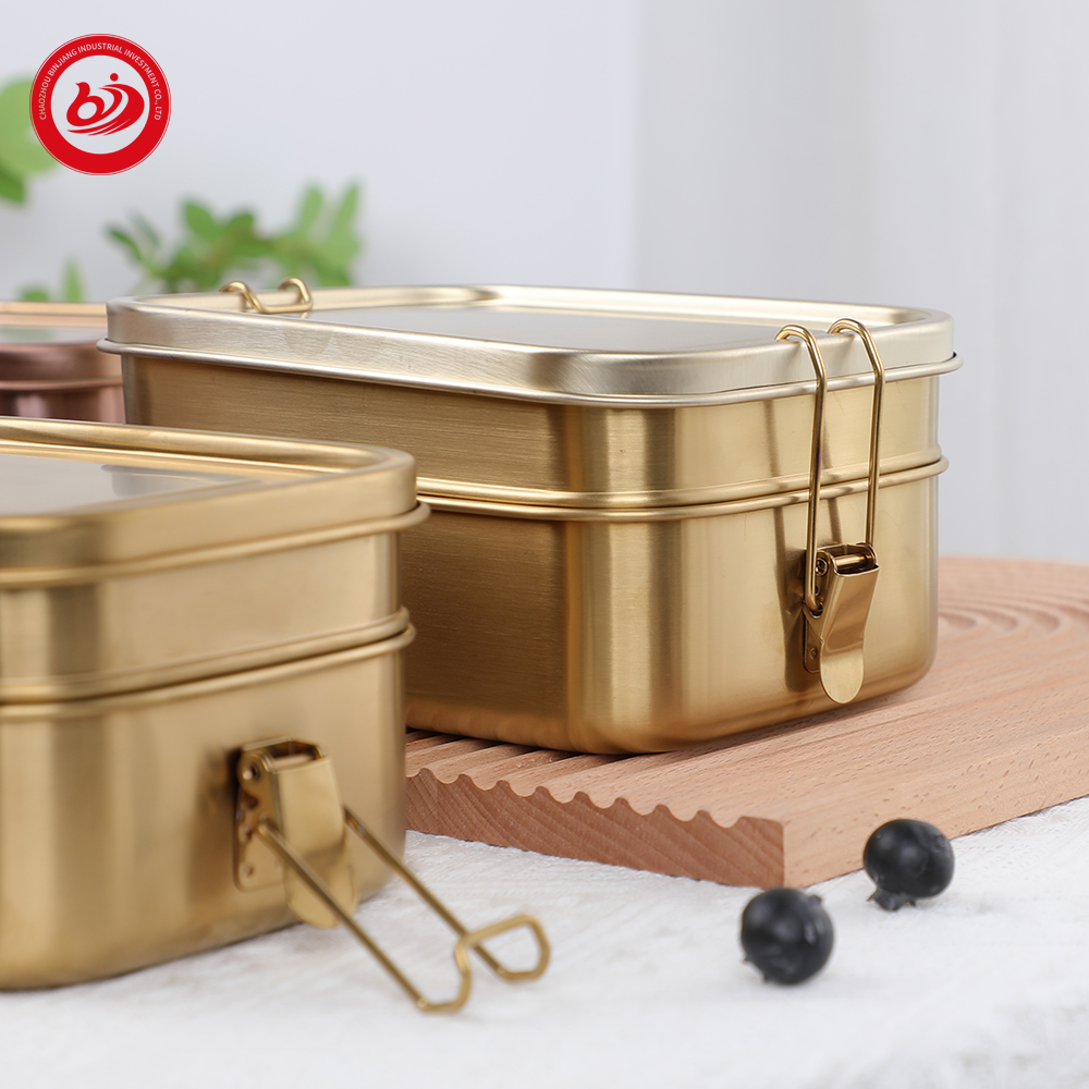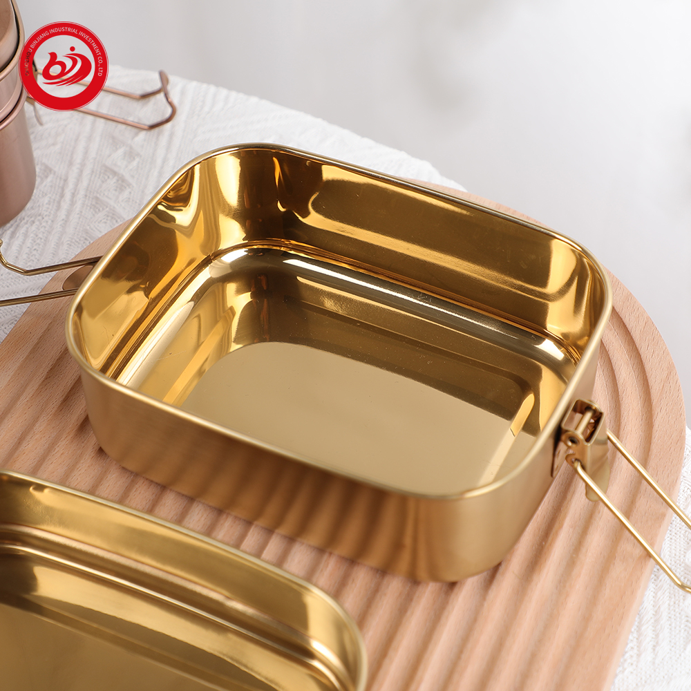 2层镀金饭盒详情