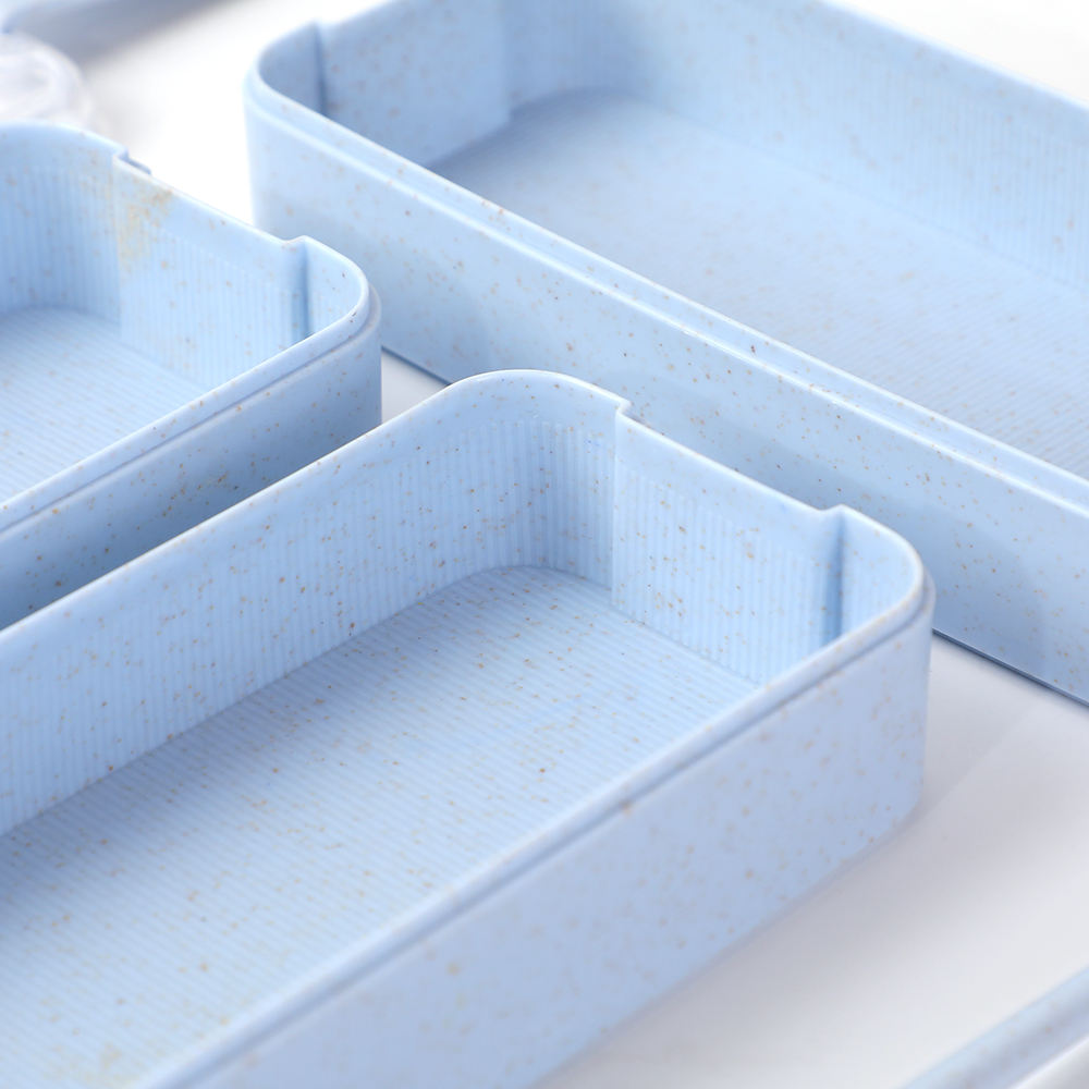 可持续的核心材料:午餐盒的主体由麦秆纤维和食品级 PP(聚丙烯)的独特混合物制成。麦秆是一种农业副产品,使这款午餐盒成为资源丰富且环保的选择。它具有轻盈、自然的纹理,比玻璃或不锈钢轻得多,非常容易放在包里携带。