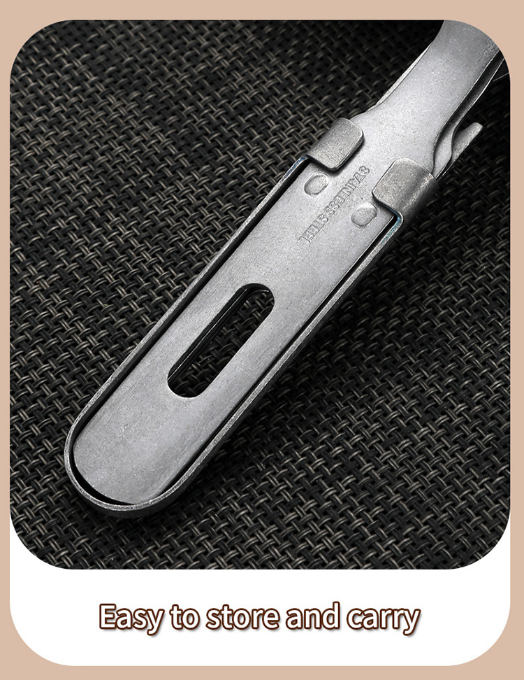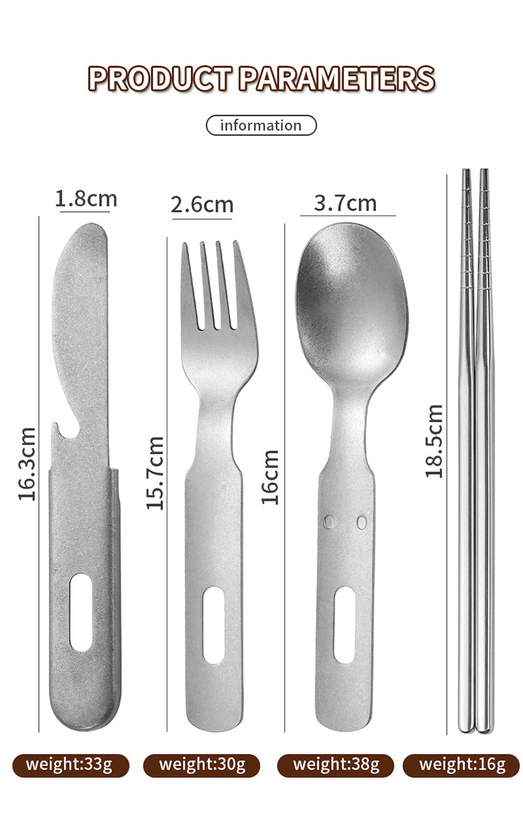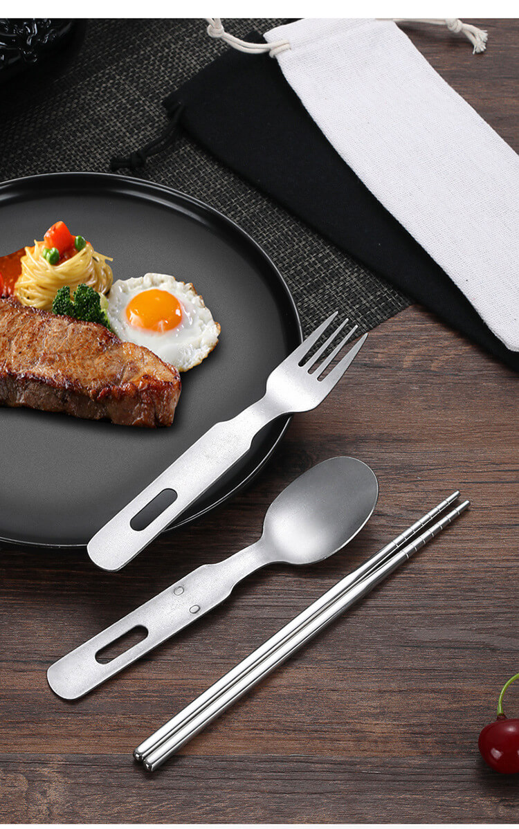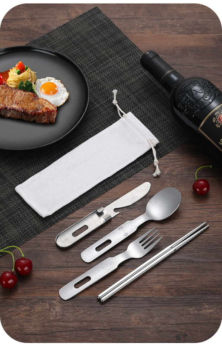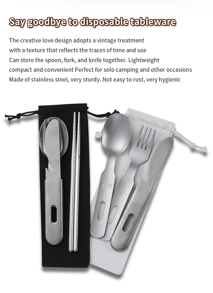 无论您的旅程前往何处,都会提升您的用餐体验。推出便携式复古不锈钢野营餐具套装——怀旧设计、坚固耐用的实用性和现代环保意识的巧妙融合。这不仅仅是另一套旅行用具;它是一套旅行用具。它是为挑剔的冒险家、忙碌的专业人士、具有环保意识的学生以及任何注重日常必需品品质和个性的人精心打造的伴侣。