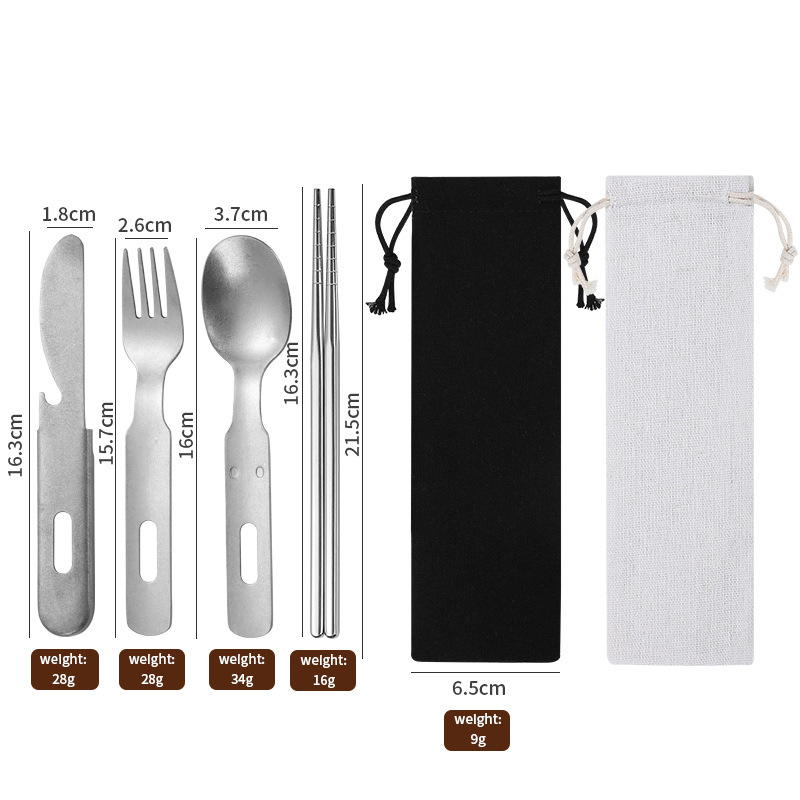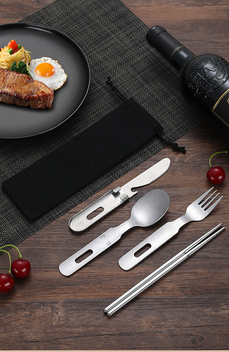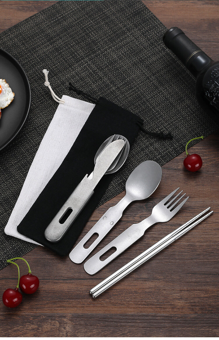 该套件的核心是为了性能而设计。它由优质食品级不锈钢制成,具有卓越的强度以及防锈和防锈能力。该刀提供干净、高效的切割;叉齿坚固,可刺穿食物;勺子有一个宽大的碗,可以舒适地进食;套装中还包括筷子和可重复使用的吸管,为各种美食提供了多功能性。这是一套旨在处理从丰盛的篝火炖菜到精致的办公室沙拉的各种食物的套装。