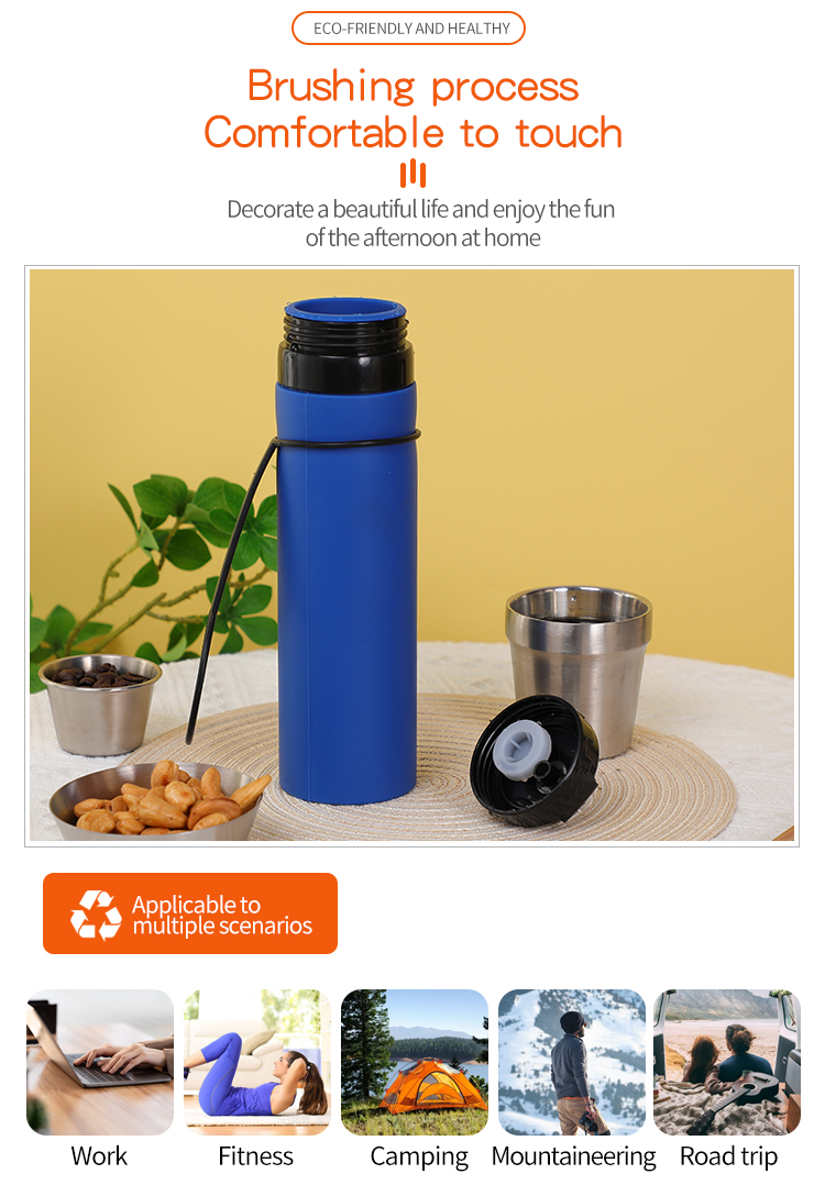 对于户外探险家:无论您是徒步旅行、骑自行车还是露营,这款瓶子都是您的完美伴侣。装满冰水,让您在炎热的山道上保持清爽,或者装上热咖啡或茶,让您在山顶温暖起来。其耐用的结构可以应对户外的严酷环境,而宽口非常适合从溪流中填充或添加电解质混合物。