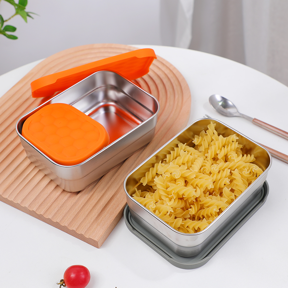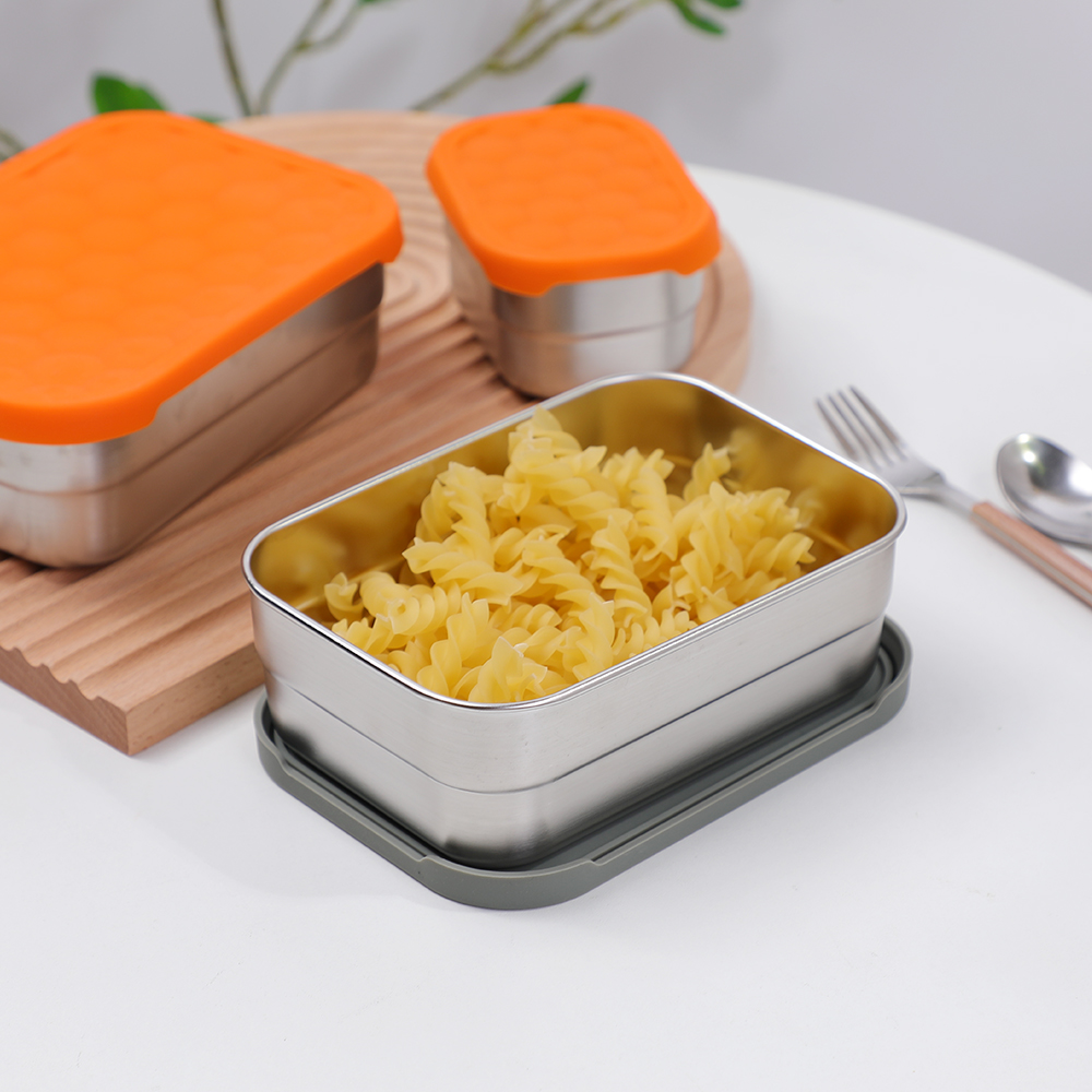带防漏硅胶盖的矩形不锈钢容器为食品储存提供了一种现代、节省空间的解决方案,将时尚的设计与卓越的功能相结合。这些容器由优质 304 不锈钢制成,防锈、无异味且经久耐用,而密封硅胶盖可确保食物保持新鲜且无泄漏。矩形形状非常适合存放三明治、卷饼或烘焙食品等扁平或分层食品,并且可无缝放入午餐盒、冰箱和厨柜中。它们有多种尺寸可供选择,从紧凑型 0.5 升到大号 3 升,非常适合准备饭菜、剩菜或随身携带的零食,其耐用的表面可承受日常使用并保持抛光的外观。